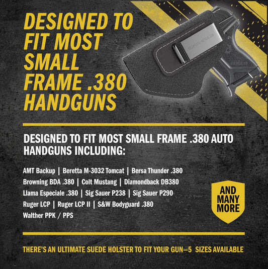 The Ultimate Suede Leather IWB Holster - Small Size | Fits Ruger LCP, LCP2, Sig P238, P290, S&W Bodyguard .380 and Most .380's - Lifetime Warranty - Made in USA