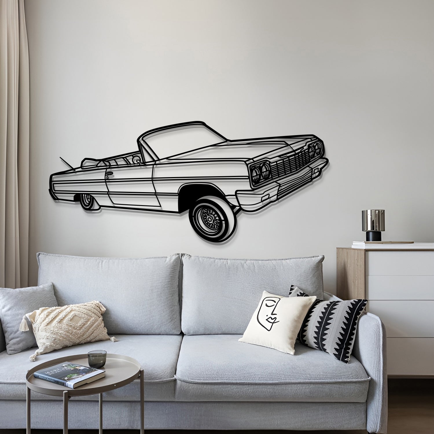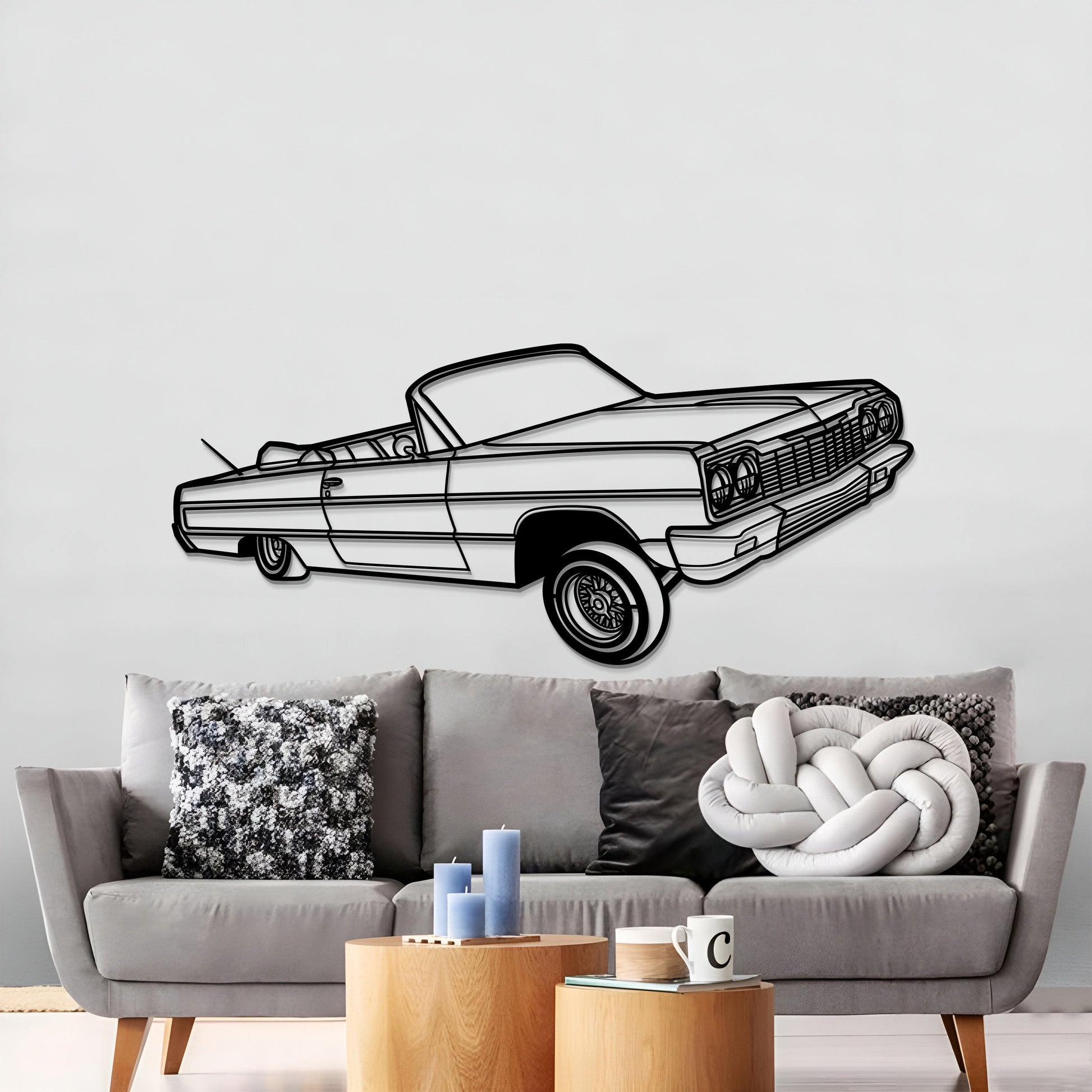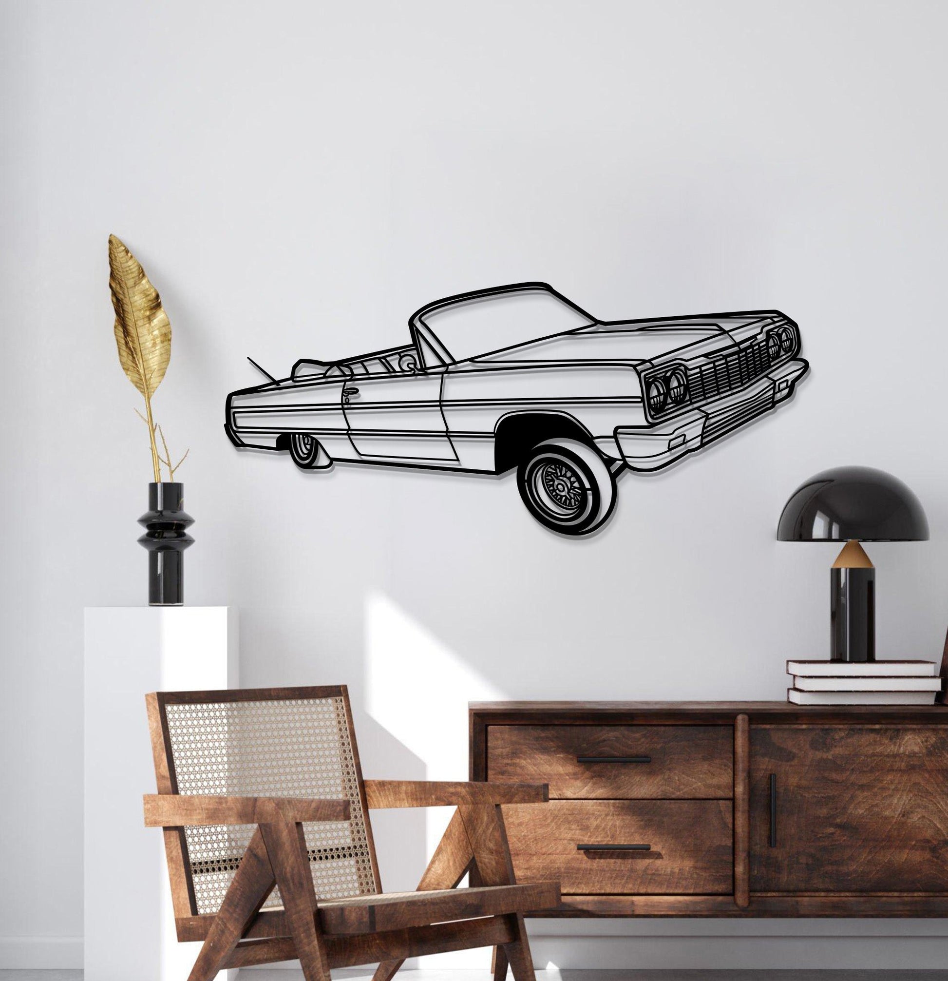 This 1964 Impala Convertible Lowrider Perspective Metal Car Wall Art will turn any car enthusiast's home, garage, hallway, living room, bedroom, or office into a unique space, add a stylistic look and captivate petrolheads as well as visitors.