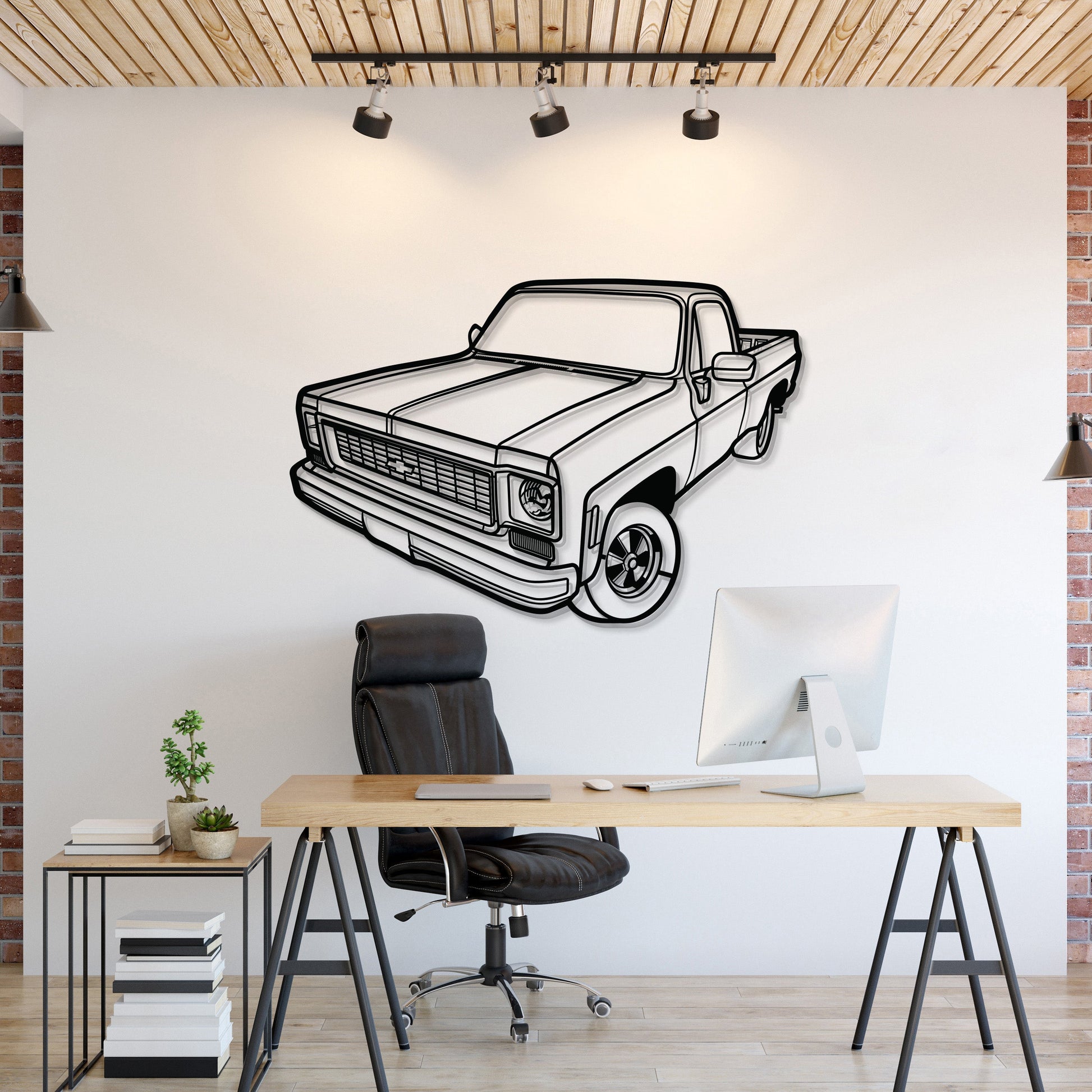 This 1973 C10 Perspective Metal Car Wall Art will turn any car enthusiast's home, garage, hallway, living room, bedroom, or office into a unique space, add a stylistic look and captivate petrolheads as well as visitors.