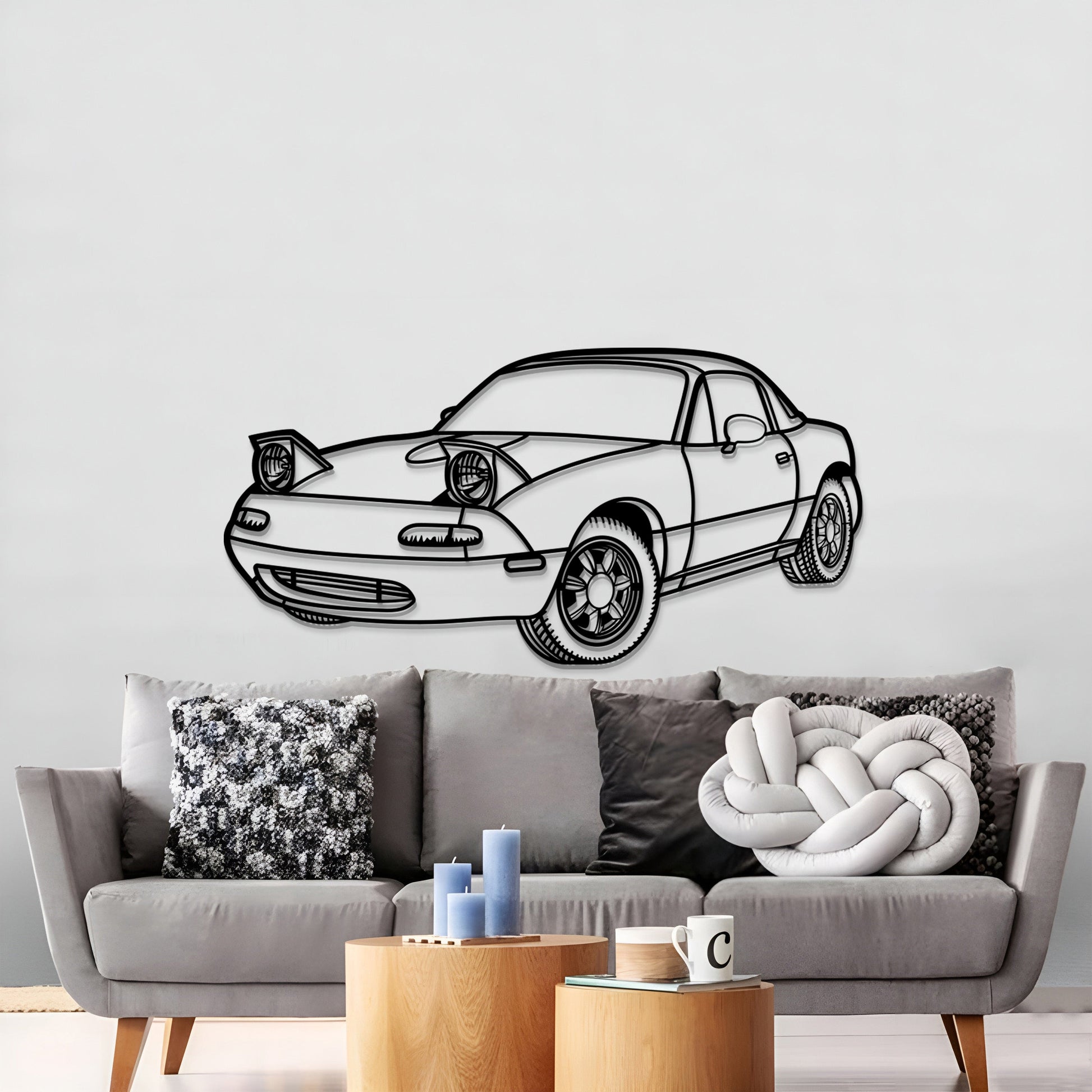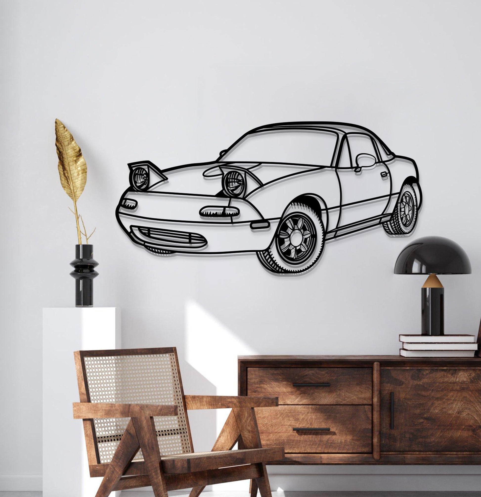 This 1991 Miata MX-5 Perspective Metal Car Wall Art will turn any car enthusiast's home, garage, hallway, living room, bedroom, or office into a unique space, add a stylistic look and captivate petrolheads as well as visitors.