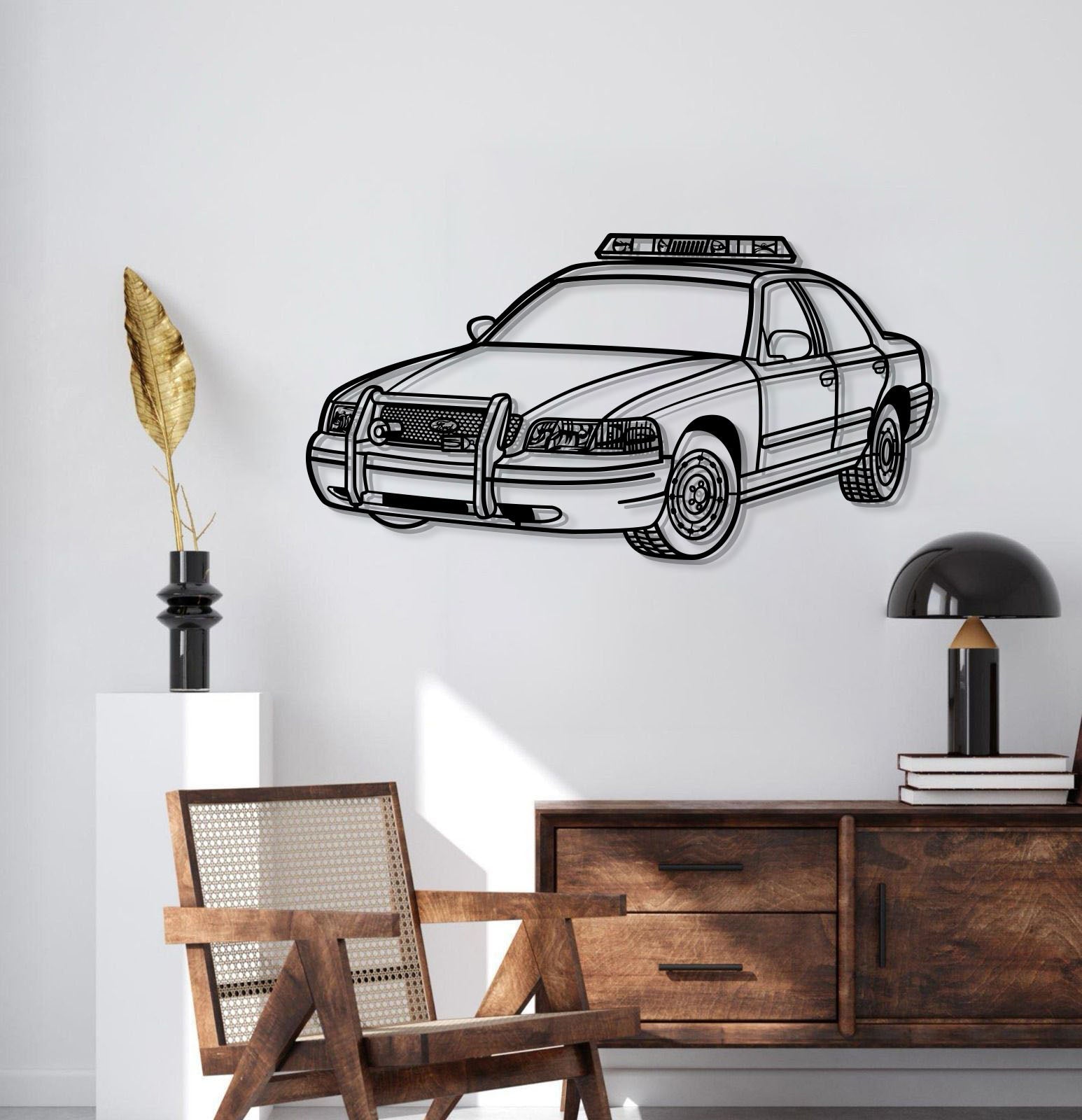 This 2003 Crown Victoria Copcar Perspective Metal Car Wall Art will turn any car enthusiast's home, garage, hallway, living room, bedroom, or office into a unique space, add a stylistic look and captivate petrolheads as well as visitors.