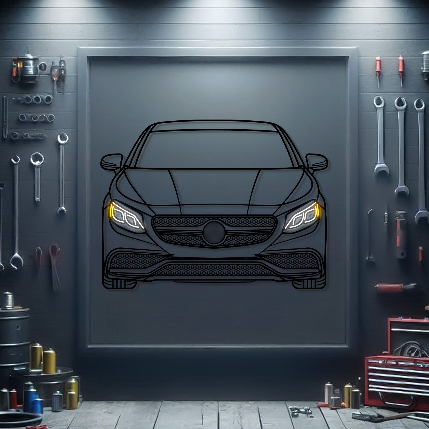 This 2015 S63 AMG Front View Metal Neon Car Wall Art will turn any car enthusiast's home. garage. hallway. living room. bedroom. or office into a unique space. add a stylistic look and captivate petrolheads as well as visitors.