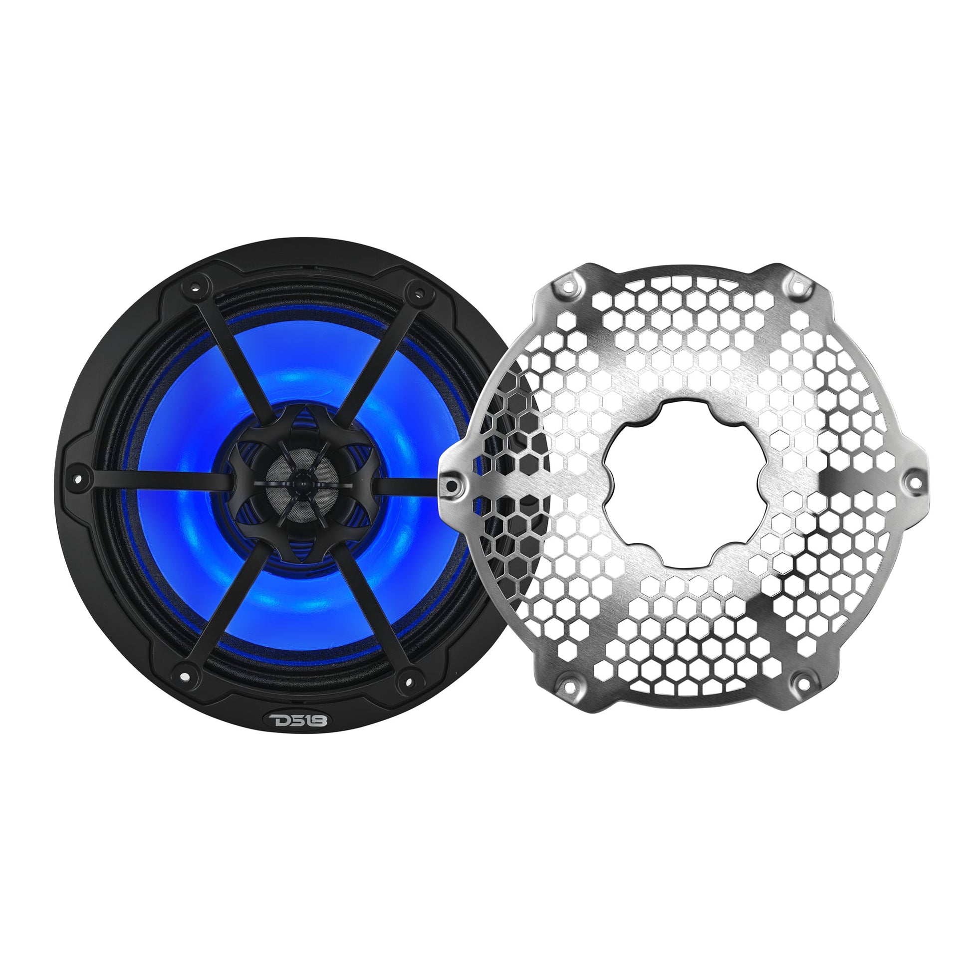 The IP65 rated speaker is housed in a UV-protected injection-molded ASA basket. A removable stainless steel grill guards against corrosion. Integrated 12V RGB LED lighting adds customizable flair to your audio system.