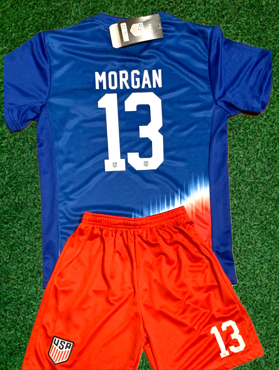Alex Morgan Kids Soccer Jersey Set - Toddler & Youth Sizing. Youth Toddler Sizes. Uniform Shirt and Shorts matching set. Toddler Youth Tshirt Awesome Youth Soccer Jersey and shorts set of 2. Size 2T, 3T, 4T, 5T, Extra Small, Small, Medium, Large, Extra Large, 18, 20, 22, 24, 26, 28, 30. All in stock ships within 12 hours from order time. We ship from Missouri. All soccer jerseys are brand new and never tried on. Amazing Screen Printing & Embroidery.