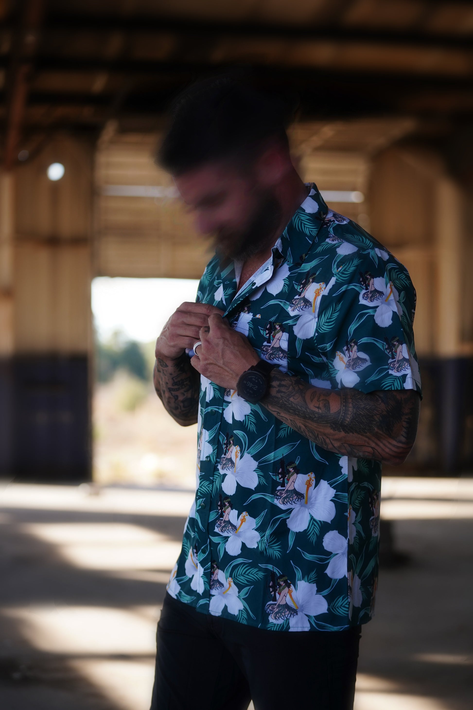 The Aloha button-up returns by popular demand, combining bold style with practical performance. Showcasing a newly redesigned hot green tropical Hawaiian pattern, this short-sleeve oxford is made from a polyester/spandex blend that offers superior comfort and durability. Its relaxed fit and snap buttons allow for easy, swift movement, while weighted inner pockets facilitate a smooth sweep-to-weapon draw (weight not included). Lightweight and breathable with a left breast pocket, this shirt keeps you sharp and ready whether you’re vacationing with family or hanging out with the crew.