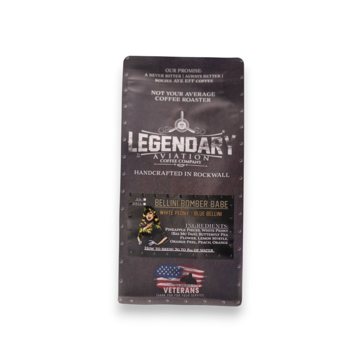 Strap in and prepare for takeoff into flavor paradise with Bellini Bomber Babe, a bold and vibrant fruit-forward white tea blend that’s as dazzling as a pin-up girl on the nose of a WWII bomber. Infused with juicy peach, citrus zest, and the mesmerizing blue hue of butterfly pea flower, this tea is as smooth as it is striking. Whether served hot or iced, it’s a mission-ready sip that’ll leave you floating on cloud nine.