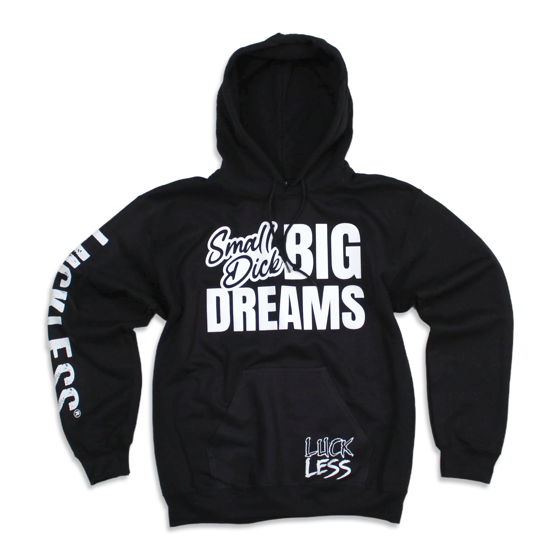 Hey there, life-of-the-party! Look, we get it—not everyone's blessed in every department, but who says you can't make a bold statement while being the center of attention? With our "Small Dick, Big Dreams" black hoodie, you're not just breaking the ice, you're smashing it to pieces! Featured in crisp white letters that contrast like your charm against your challenges, this hoodie is for the guy who's ready to laugh off the little things while tackling life's big problems. Made from the softest fabric because, let's be real, you could use some comfort in your life. So why not wear your heart (or, uh, other parts) on your sleeve—or in this case, your chest? 😂🖤