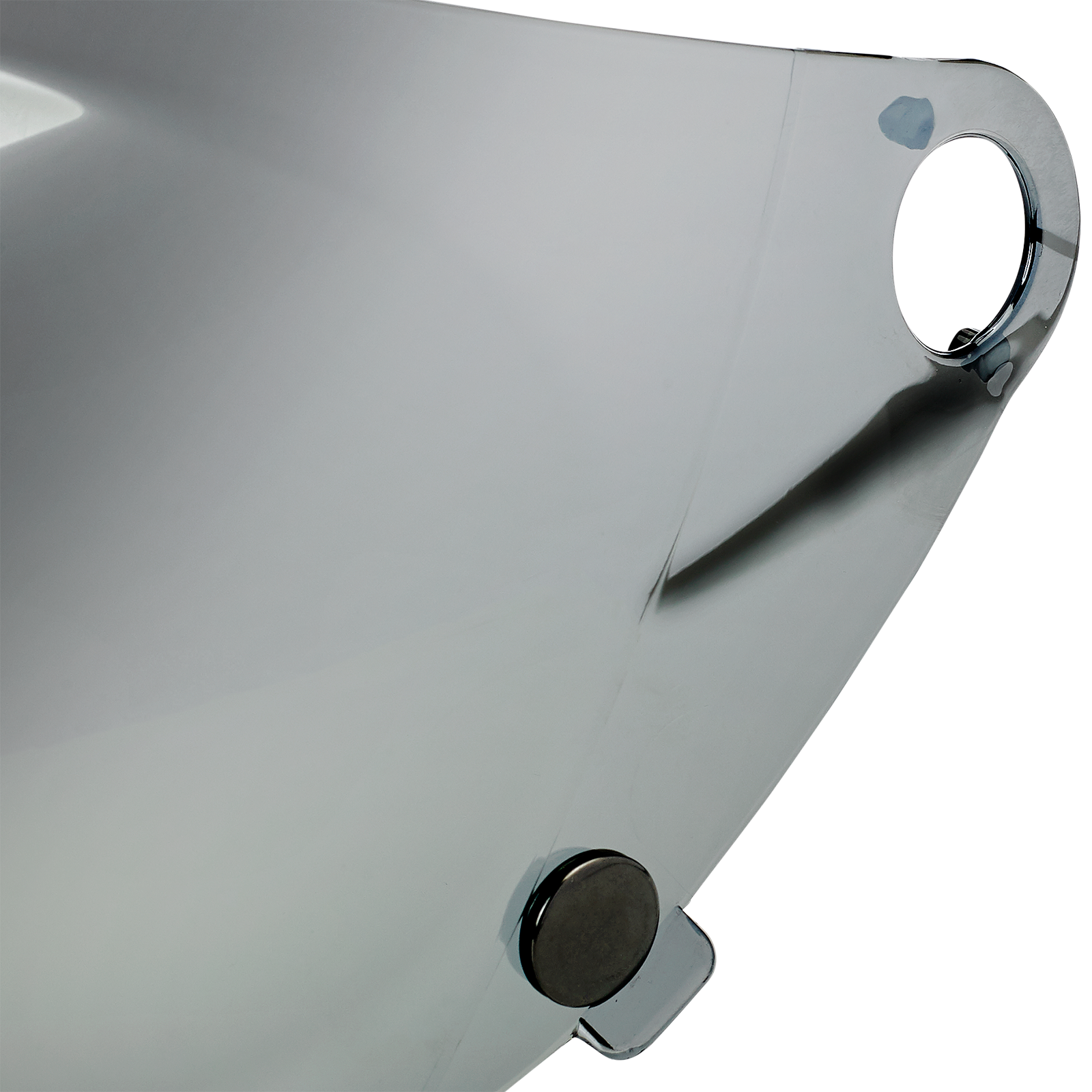 - Nickel-plated stainless-steel snap on shield fastens securely to snap on helmet shell