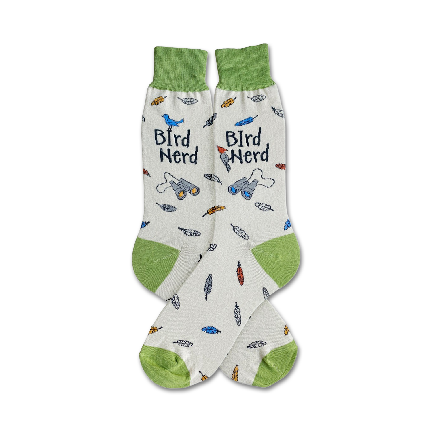 See every bird in the bush! Strut your stuff in these feather-print socks and you'll attract all the right birdies. Inspired by the world's most enthusiastic bird watchers, these feather-lined 'Bird Nerd' socks are guaranteed to make your feet chirp with happiness. So spread your wings and show off your love for our fine feathered friends.