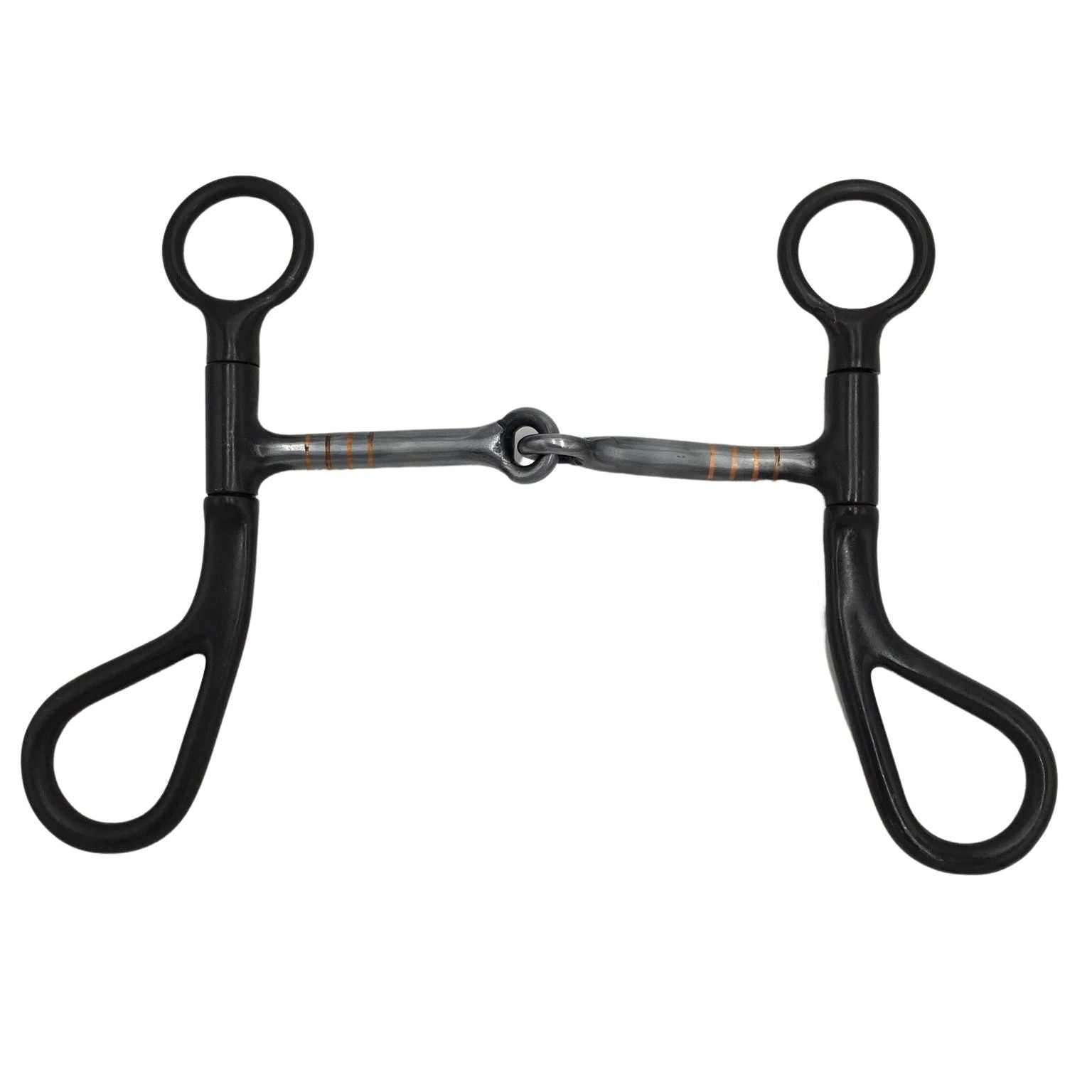 This bit works well both as a training bit or as an everyday use bit. The 5" black steel mouth with copper inlay will keep the mouth moist and responsive. This bit has low to moderate leverage and designed to be very gentle. 6" black steel cheeks.