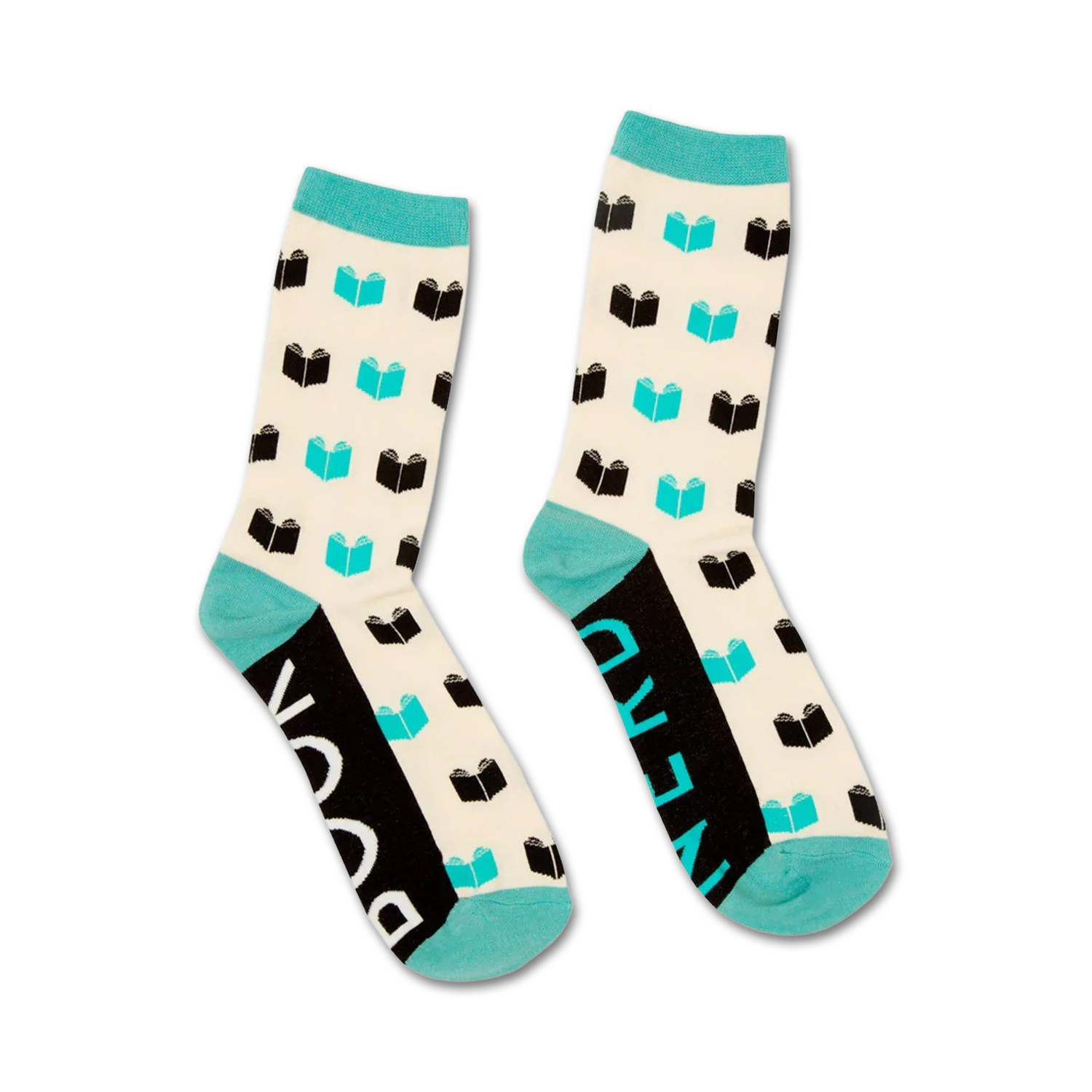 Like books? Then you're a certified 'Book Nerd!' These black and white socks have the word 'Book' written on one sock with blue letters, and the word 'Nerd' written on the other sock in blue letters. They're made for those of us happy to self-proclaim how much we love to read, and they are sure to get a fun reaction or laugh from other nerds like us. As a bonus, these crew-length socks can quickly help you identify your book-loving buddies.