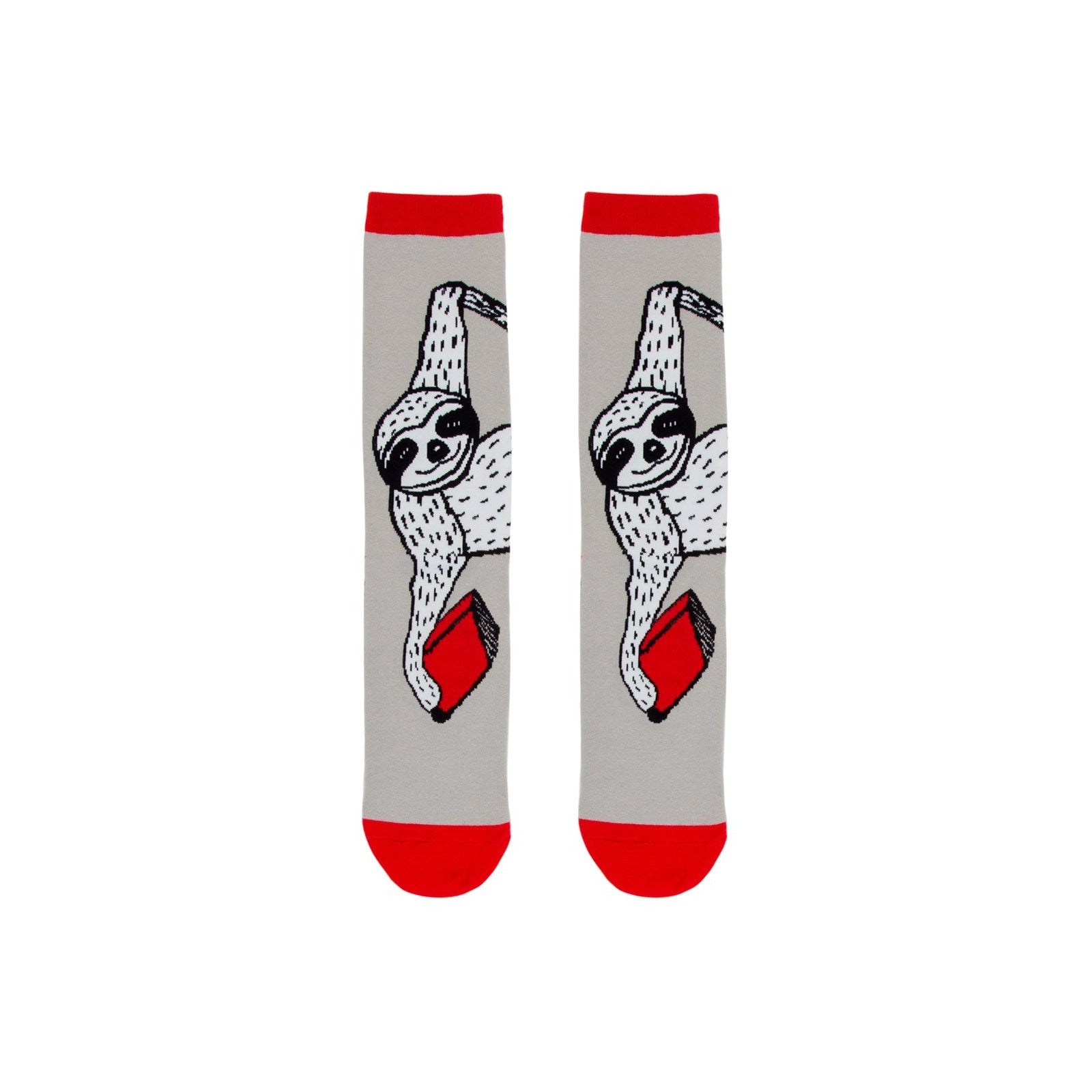 Book Sloth Socks: These socks are for those who take sloth-ing very seriously. Picture this: sloths hanging out on a gray background, holding red books - a literary haven for the lazy. Whether you're a bookworm, lover of all things sloth, or just appreciate a good pun, these socks will make you grin faster than a sloth on a caffeine high. So kick back, put your feet up, and let these Book Sloth Socks do the talking.