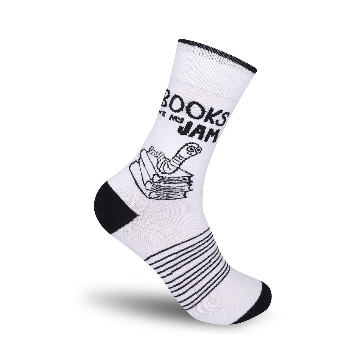 Worms love books. Our bestselling literary worm crew socks are the perfect match for bookworms. Wear your love of reading on your feet with these cleverly designed socks showcasing a witty worm character studying hard on a stack of books. They're fun, cozy, and will make bibliophiles smile. Perfect for your next library trip or snuggle session with a good book. Grab a pair today and let the pages turn themselves!