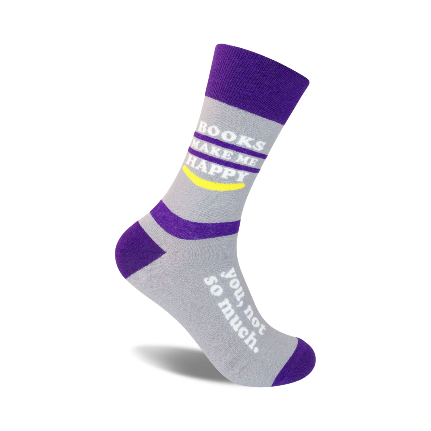 Bursting with wit and character, our Books Make Me Happy socks are perfect for bookworms and reading enthusiasts. These lively striped socks will make you feel as joyful and cozy as getting lost in your favorite literary world, so put on a pair and join the reading revolution!