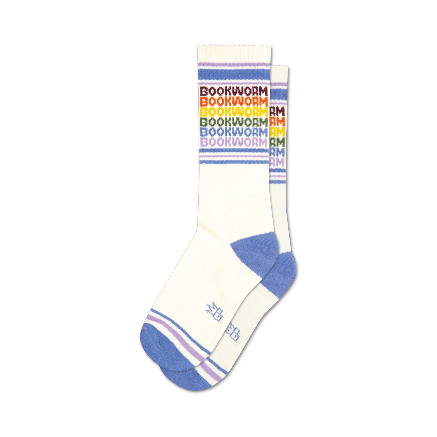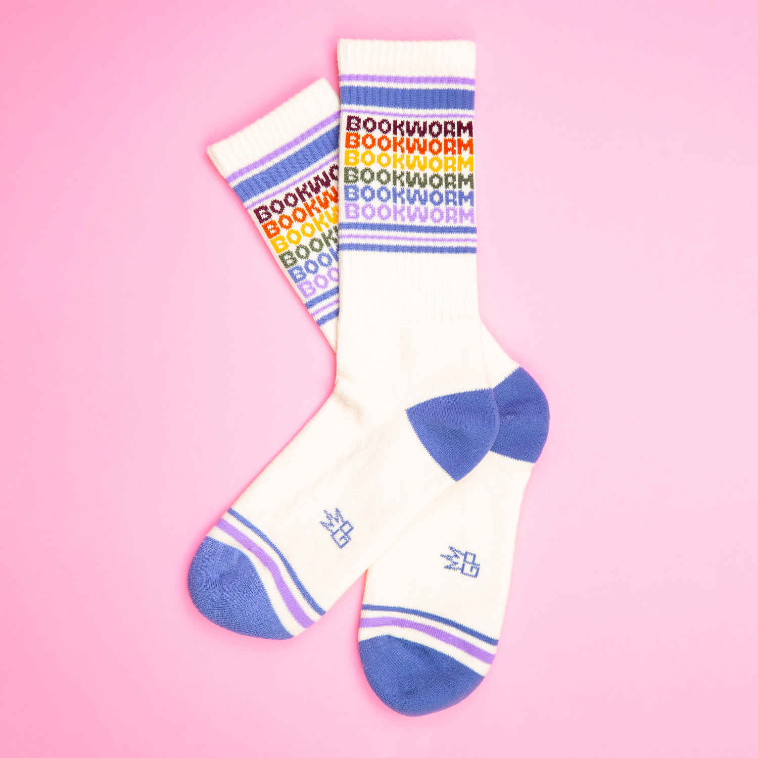 These 'Bookworm Crew' socks proudly display a repeating pattern of the word 'BOOKWORM' in colorful rainbow letters. Who needs a library card when you can just stick your feet out and let the letters do the talking? And don't forget, they'll match all your favorite literary outfits. No more getting disapproving looks from the Librarian with these book-loving socks on your feet!