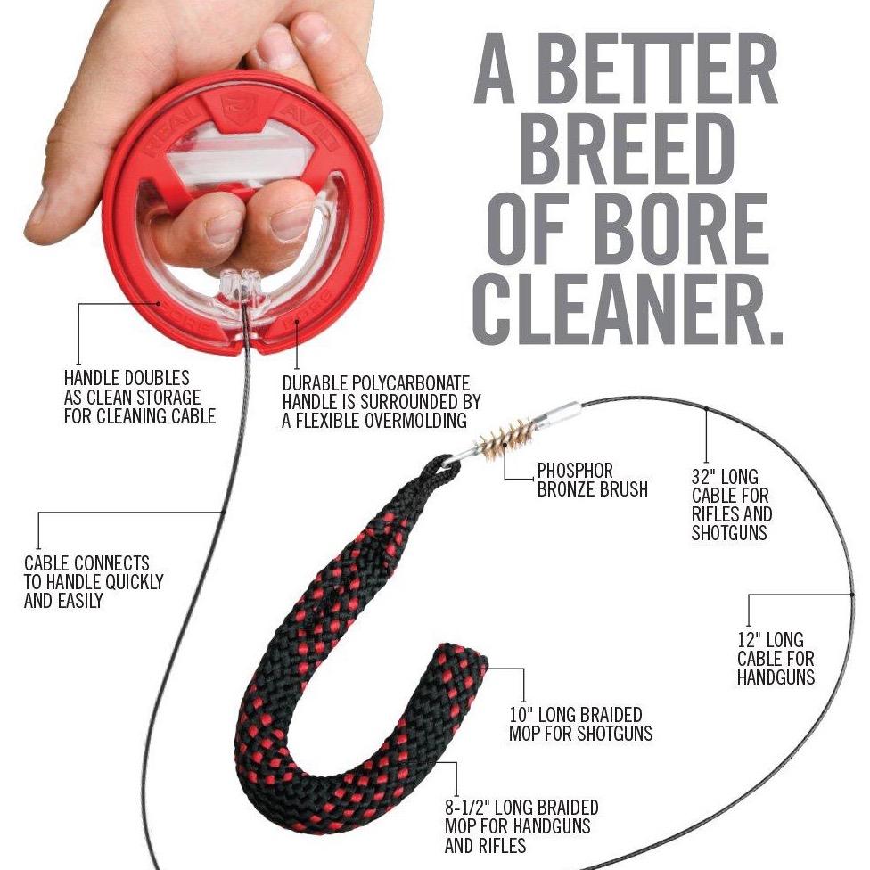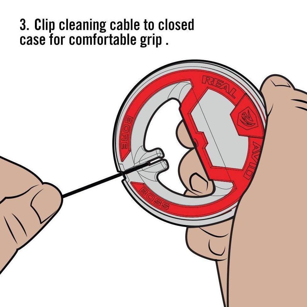World’s Easiest Bore Cleaner. The single piece Dual Action Cable with integrated phosphor bronze brush and braided mop wraps around the unique Flex-Case Handle to keep the system stowed and organized. To use, simply flip, feed, clip, and pull. Throw it in your pack, or put it in your pocket. It’s the next best thing to a self-cleaning gun.
