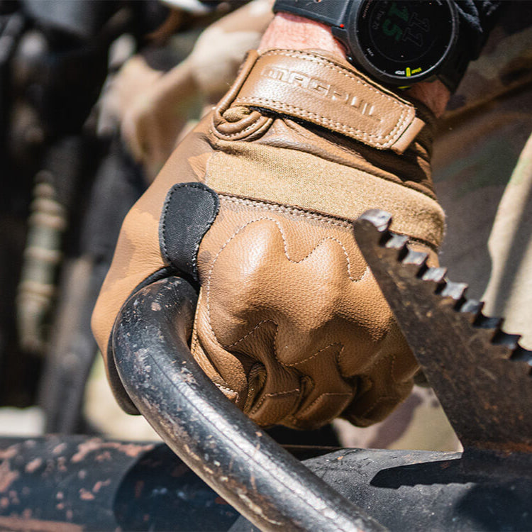 The D30 pre-curved knuckle protector – which passes EN13594 Level 2 standards for motorcycle safety and EN388 standards used to rate industrial-strength gloves – combined with goatskin leather, offers a flexible, soft, pre-curved fit to ensure the gloves protect the hands without discomfort like other gloves due to the use of bulky, rough, overly rigid materials. Further increasing the gloves’ protective traits is the Magpul Gun Gusset overlay, which provides additional reinforcement on the thumb to help manage wear.
