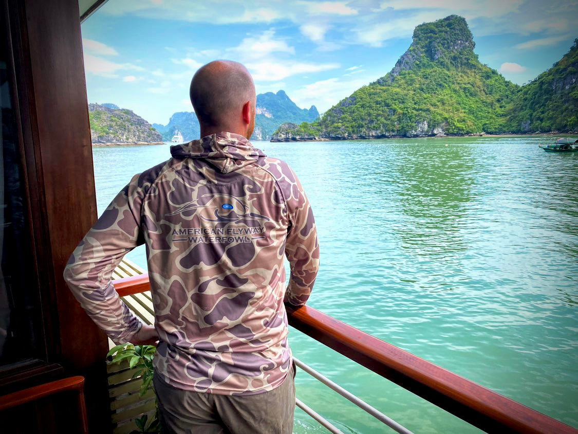 Brown OSC Lightweight Performance Shirt with Hood and Flat Draw String