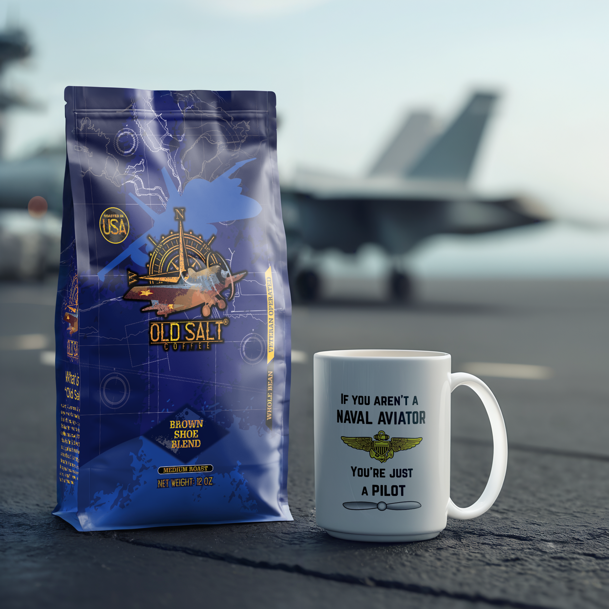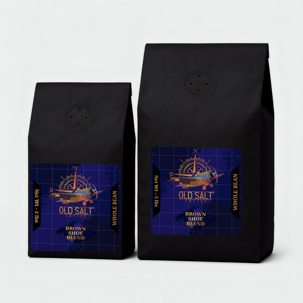 Experience the bold spirit of Naval Aviation with every sip of Old Salt Coffee’s Brown Shoe Blend. Grown by Sergio Junaquerira Dias on JC Coffee farms nestled in Brazil’s captivating Sierra da Mantiqueira region, this blend embodies a legacy of excellence and courage cherished across generations. Amidst the lush Atlantic forest, JC Coffee farms thrive in an ecosystem celebrated for its biodiversity and sustainable practices. Here, the beans are cultivated under meticulous care, benefiting from the region’s fertile soils and pristine waters. The result is a coffee of exceptional quality, renowned for its medium roast that harmoniously blends chocolate richness with subtle fruity undertones. Brown Shoe Blend pays homage to the steely resolve of Naval Aviation professionals—men and women who embrace challenges with unwavering determination. Whether you’re gearing up for a demanding mission or savoring a moment of reflection, this coffee offers a robust companion that resonates with the adventurous spirit of those who serve. Discerning coffee lovers appreciate Brown Shoe Blend for its exquisite taste and the rich story behind every cup. It’s more than coffee; it’s a journey into tradition and craftsmanship, reflecting the dedication and expertise passed down through the generations. Old Salt Coffee isn’t just part of the second or third wave—it’s a quintessential choice for the fourth wave coffee aficionado. With a commitment to quality, sustainability, and ethical sourcing, our coffee resonates with those who seek both exceptional flavor and a meaningful connection to its origins. For every bag of Brown Shoe Blend purchased online, Old Salt Coffee proudly contributes $1 to the Tailhook Educational Foundation. This initiative supports future aviators in their pursuit of excellence, bridging generations and echoing the commitment to education and camaraderie synonymous with Naval Aviation. Join us in celebrating the heritage of the “Brown Shoes”—the resilient mechanics, daring aviators, and steadfast leaders who embody American strength and courage. Whether you’re a seasoned enthusiast or discovering the art of premium coffee, Brown Shoe Blend invites you to elevate your coffee experience with each aromatic sip. Embrace the legacy. Taste the dedication. Old Salt Coffee’s Brown Shoe Blend—crafted for those who appreciate the essence of adventure in every cup. Raise your mug to honor, courage, and the timeless pursuit of perfection.