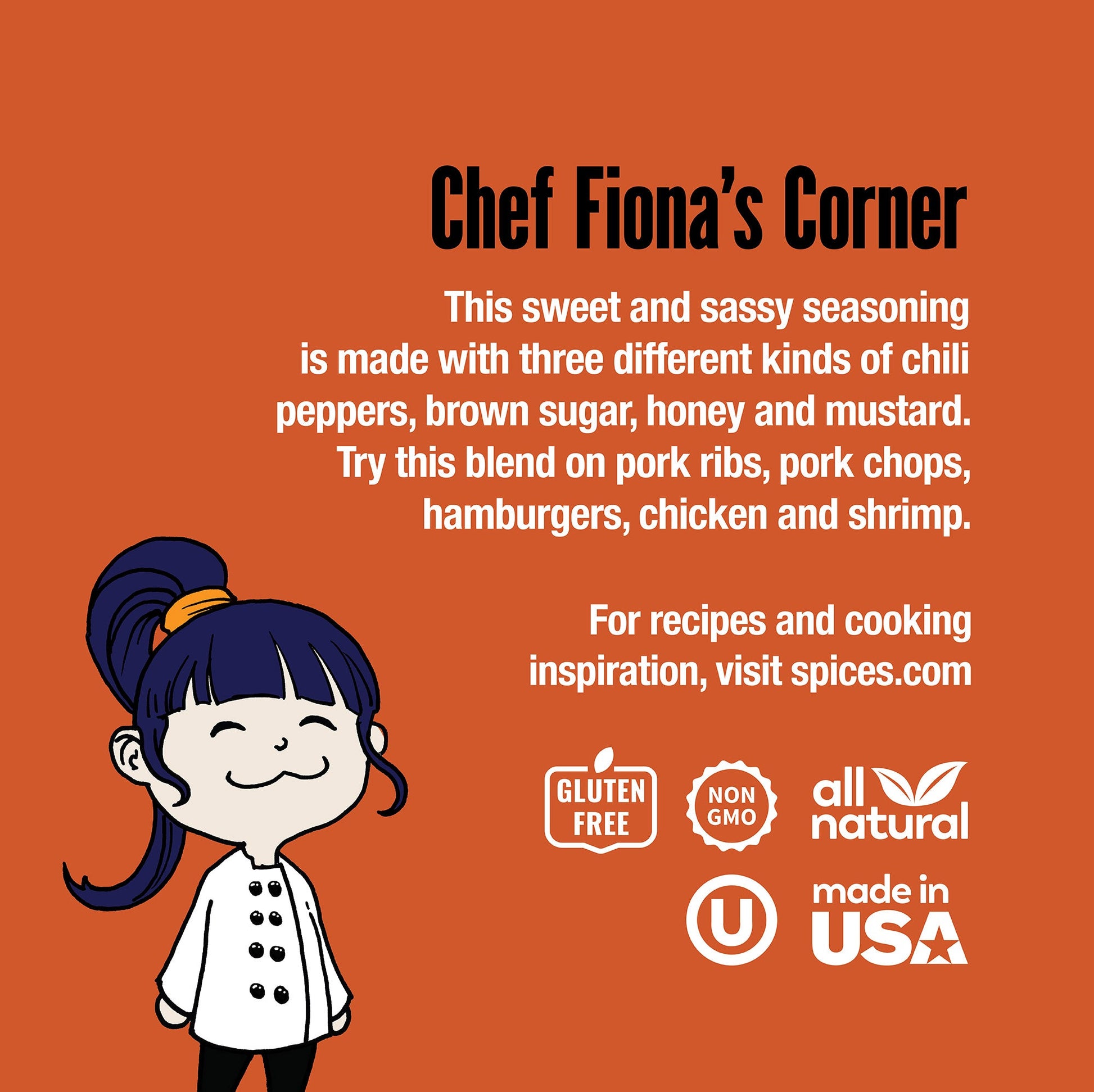 SWEET AND SPICY BBQ RUB: This sweet and sassy rub contains all the flavors that you would find in your favorite BBQ sauce (mustard, brown sugar, chilis, honey and more). It works wonders on pork baby back ribs, chicken, and shrimp.