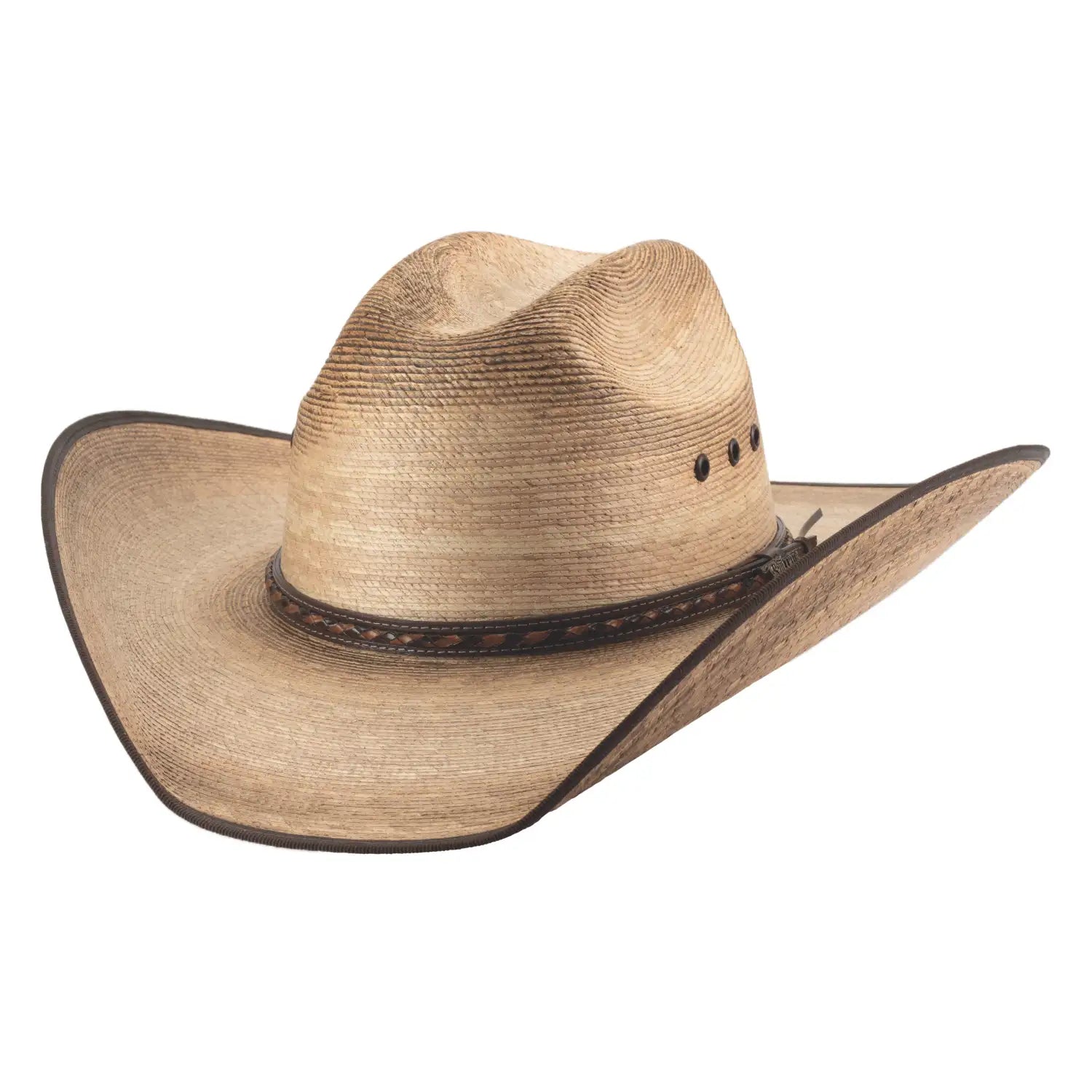 The Bullhide Bridwell from the Rodeo Round Up Straw Collection is a must-have for any cowboy who values tradition and durability. Made from sturdy palm leaf straw, this natural-colored hat features a classic cattleman crown and a 4 1/4" brim, providing both shade and timeless Western style. Designed for comfort, eyelet vents allow for breathability, keeping you cool under the sun. The two-toned braided leather hatband adds a rugged yet refined touch, making this hat perfect for the ranch, the rodeo, or a night out. Ride strong and stand out with the Bridwell!