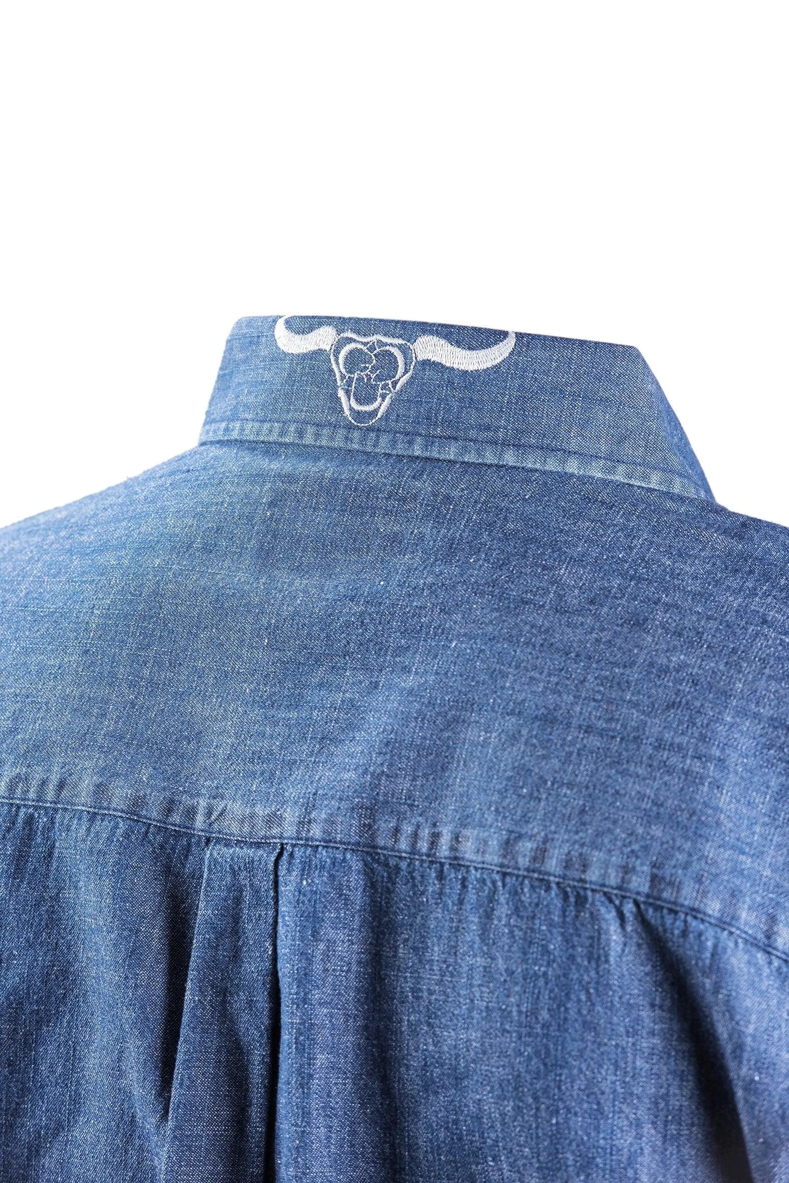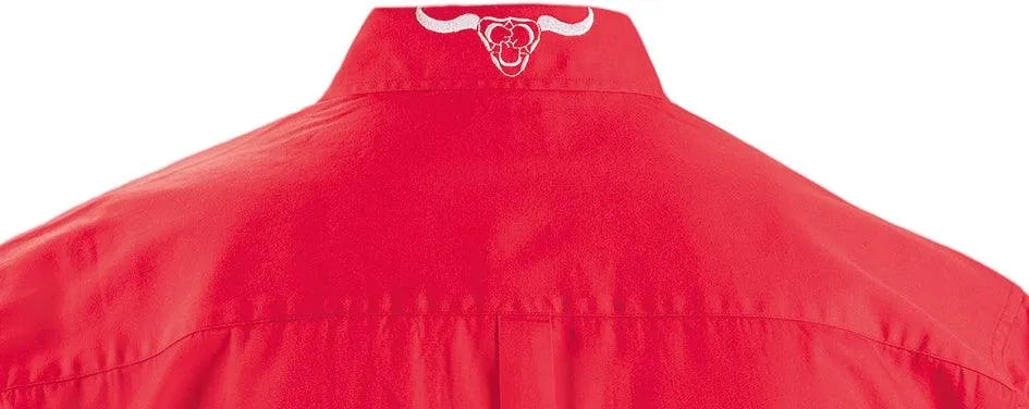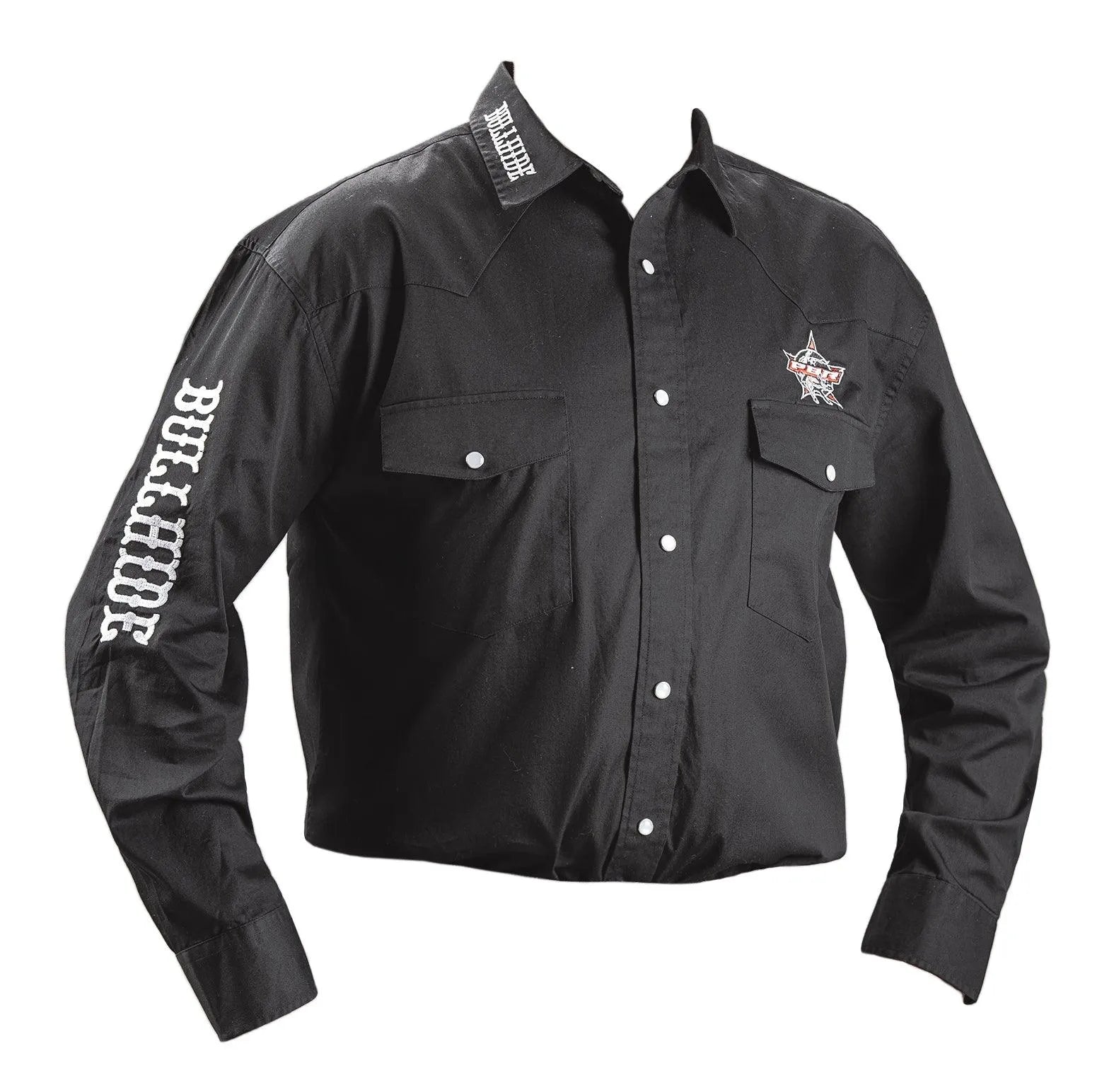 Work hard play harder with the PBR by Bullhide. This shirt features 100% cotton material, and button-up front with collar. This shirt comes in a variety of colors to enjoy. You can't go wrong with a Bullhide long sleeve. Please note differences in shirts: Black & White both have the PBR on backside of the shirt. Blue & Red both have the Bullhide bull on back of collar.