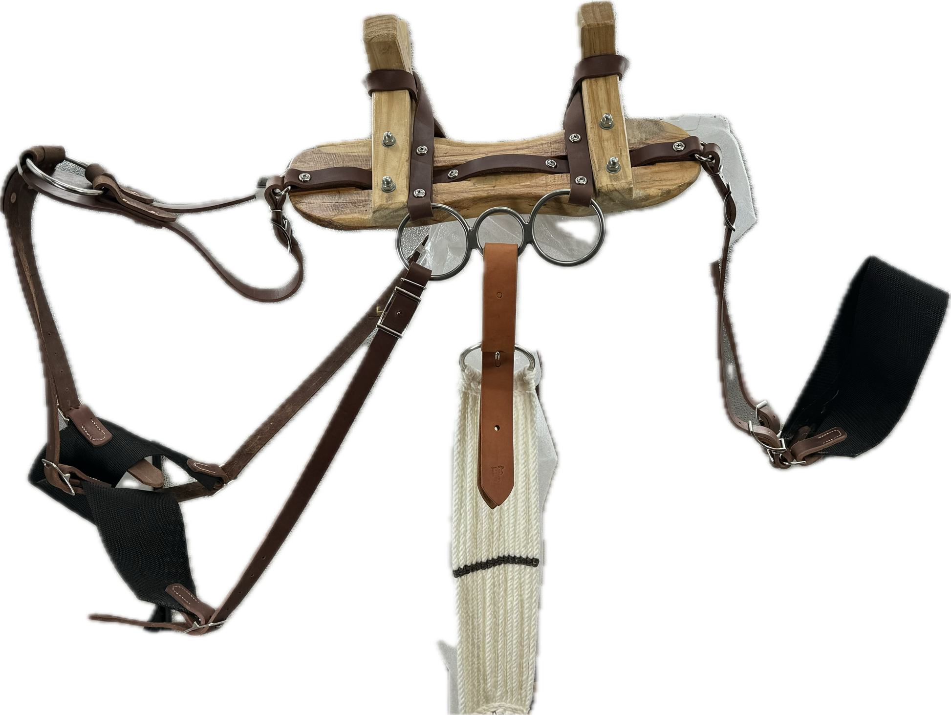 Our Burro Pack Saddle is the perfect size for your burro or donkey. Made with a humane burro tree. 4" web belting breast collar and breeching. Double rayon cincha, 3/4" hip and back straps, 11/2" latigo tie straps. Double Rigged.