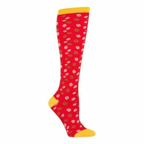 When you have a very busy lifestyle, decaf is simply not an option. Rise and shine, brew can do it! Show the world you are caffeinated and ready for action with these cool red and yellow knee high socks. Each fun pair has several coffee beans scattered about. Bean there done that!