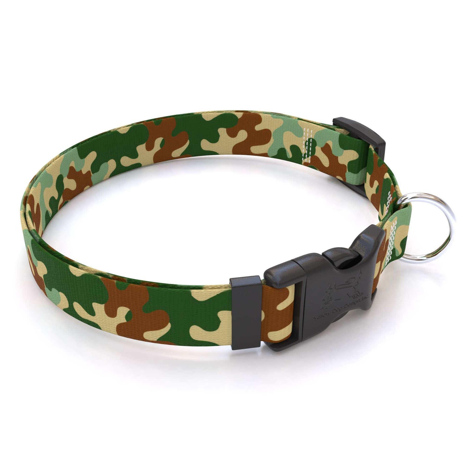 With a fresh, colorful twist on the classic camo pattern, the Camo Collection by Yellow Dog Design will do anything but help your dog blend in! Let them stand out and shine with the bright, fun camo designs. Designed for everyday wear, these collars combine comfort, security, and style. HandMade in our plant in Indian Trail, NC with some Global Materials with durable, high-quality polyester that is machine washable. Easy to put on, these collars have plastic buckles with rounded edges for comfort and a nickel-coated D-ring. They come in different sizes with adjustable slides for a custom fit, even for growing puppies. Plus, all sizes come with a separate ring to attach an ID tag. And you can grab a matching leash to complete the look!