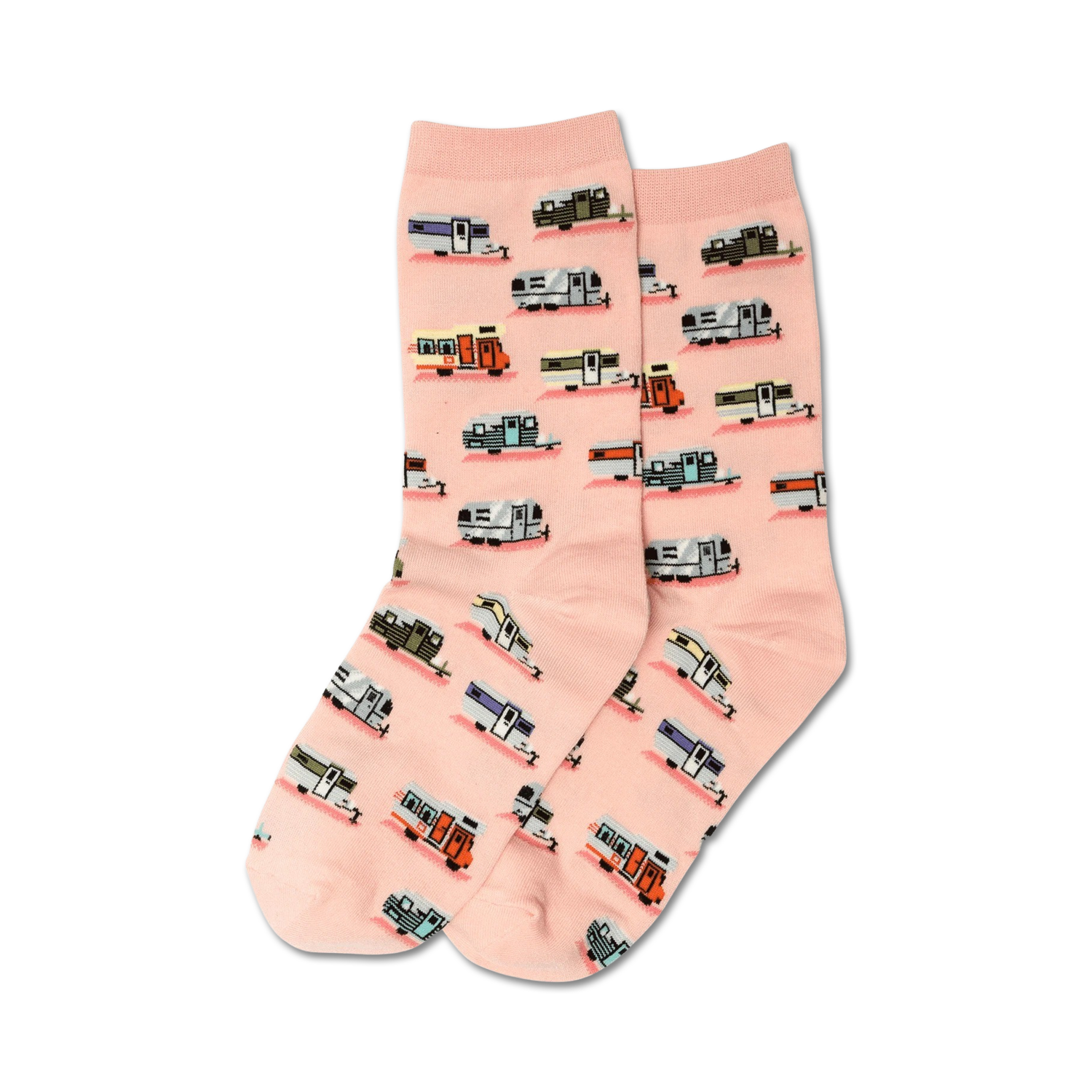 Canned ham campers made their appearance in the 1930s. It was no surprise why these charming, little campers were so well-liked. Their compact size and practicality made traveling and camping super easy. If you love iconic vintage RVs, these fun socks are perfect for you. Each cool pair has various RVs printed all over on a pink background.