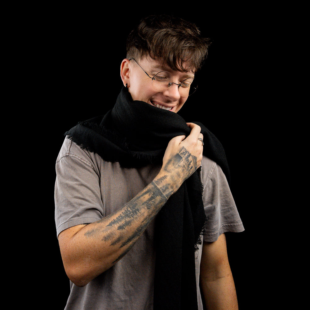 This 100% Afghan Cashmere Shemagh is sourced and loomed in Kabul, Afghanistan. Prior to the fall of Kabul, we worked to set up a full supply chain in Afghanistan to support cashmere goat herders, workers to harvest the material, and looms to weave the finest scarf on the market. Two weeks prior to the fall, we received the first samples, then everything fell apart.