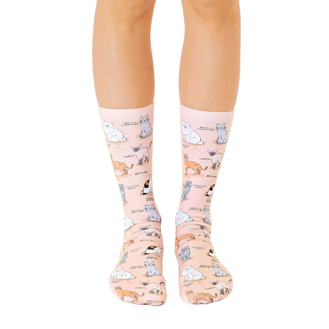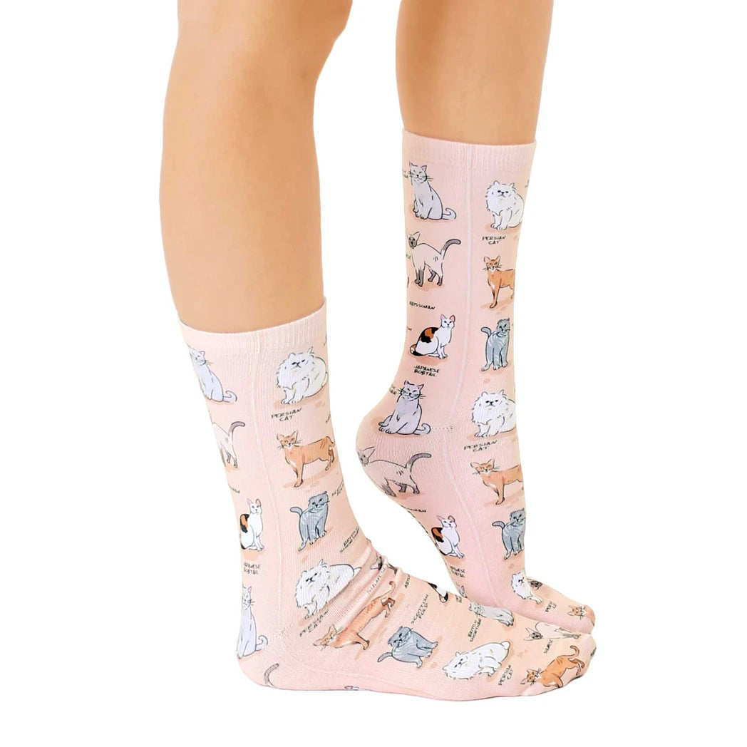 Liven up your sock drawer with our "Cat Breeds" crew socks, as charming as they are comfortable! Showcasing an array of whimsical cat patterns in vibrant pink, these socks are purr-fect for cat enthusiasts and trendsetters alike. Whether it's lounging at home, strutting around at a casual outing, or adding a pop of fun to your office wear, these socks are guaranteed to draw smiles and start conversations. Why go plain when you can express your love for felines and fashion in one go!