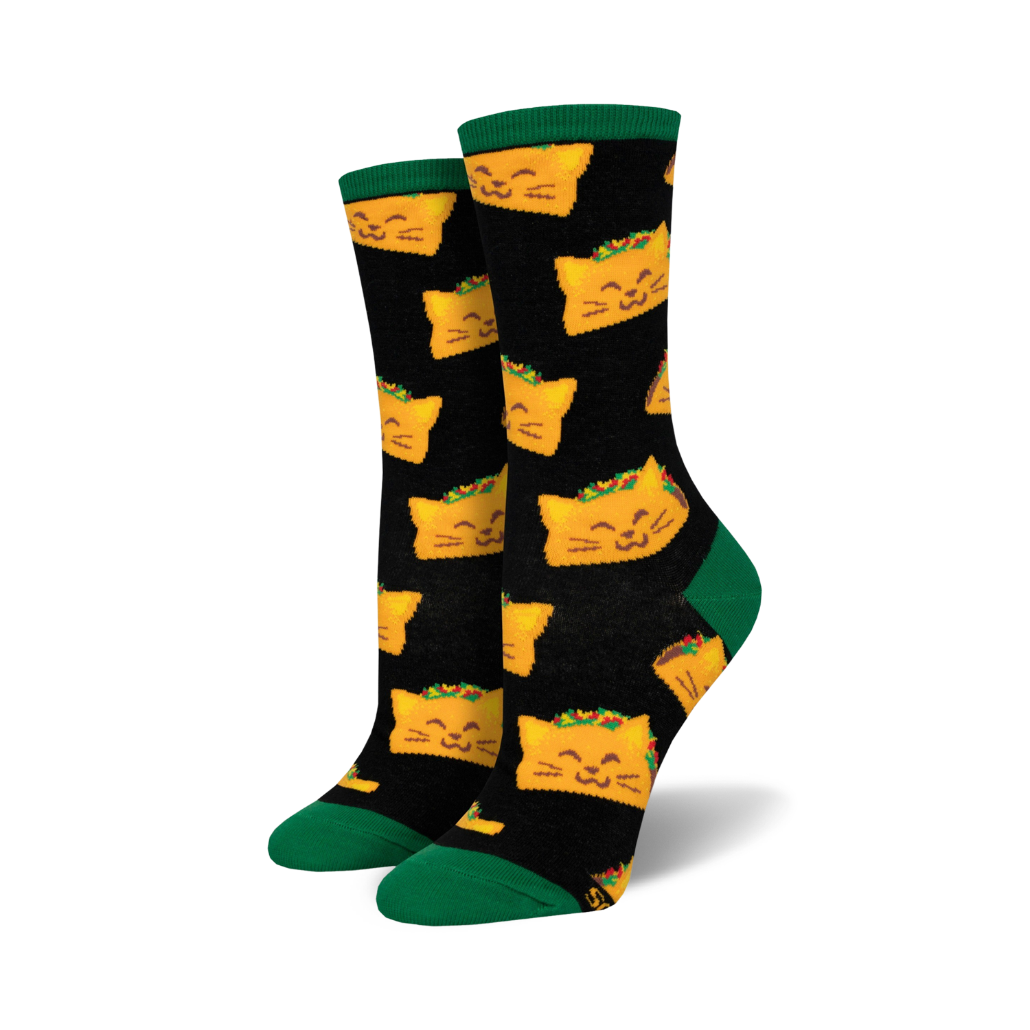 Who says socks can't be the cat's meow? Strut your stuff in these purr-fectly delicious Cat Taco socks. Featuring an allover print of cartoon kitties with taco bodies, these crew socks for women will have you feline fierce and craving some tacos. With their vibrant colors and playful design, these socks are sure to add some sizzle to your step and make you the envy of all your friends.