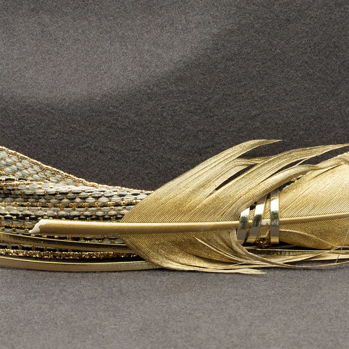 Adding a touch of sparkle and personality, the metallic layered hatband is finished with a statement feather accent. A soft cloth sweatband ensures all-day comfort, making this hat the perfect blend of confidence and country charm that Lainey Wilson is known for.