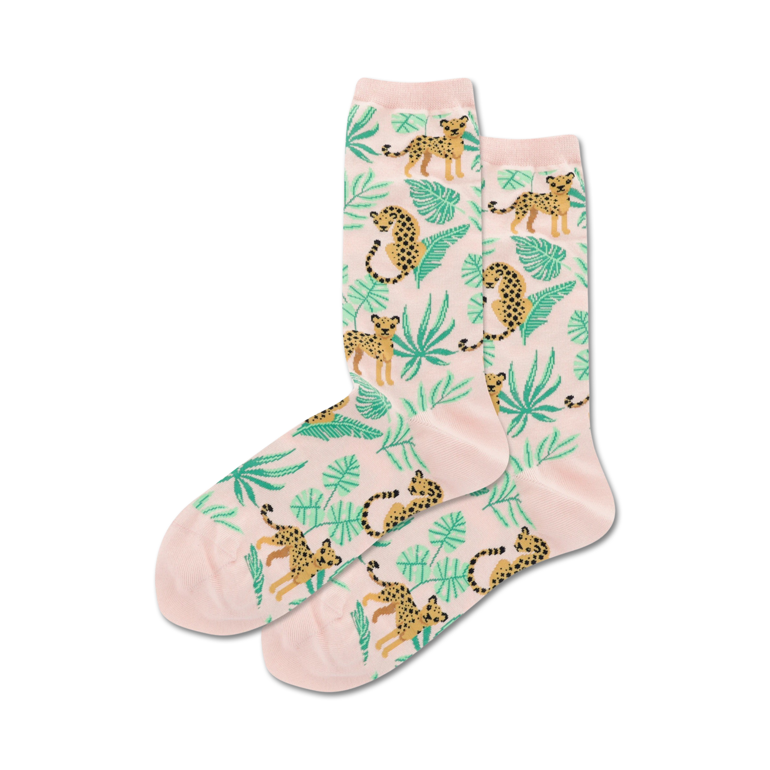 Get ready to bring some wild style to your feet with our Cheetah Novelty Crew Socks! These socks are the purr-fect way to add a touch of fun and energy to your everyday look. With their vibrant pink color and playful cheetah and green leaves pattern, these socks are sure to turn heads wherever you go. Plus, they're made with women in mind, so you can rock them all day long in comfort. So, slip on a pair of Cheetah Novelty Crew Socks and let your wild side shine through!