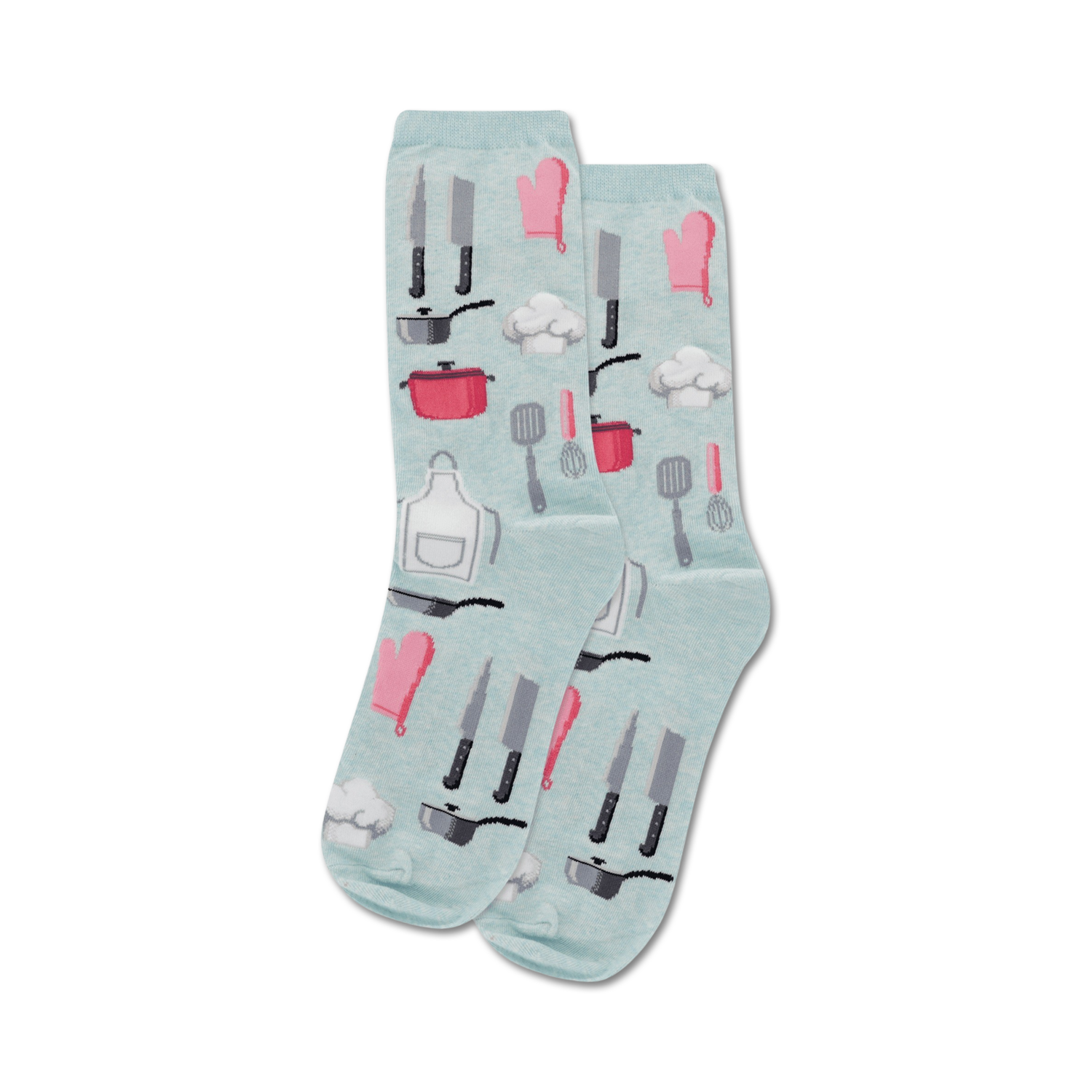 Prepare to whisk away your senses with our scrumptious Chef novelty socks! Embroidered with lively kitchen utensils, chef hats, and hearts, these socks will have you cooking up compliments. Don't be a chicken, spice up your life with these delicious foot warmers! With each step, you'll stir up a storm in the kitchen. So, put on your apron and sharpen your knives, because these socks are the cherry on top of your culinary ensemble.