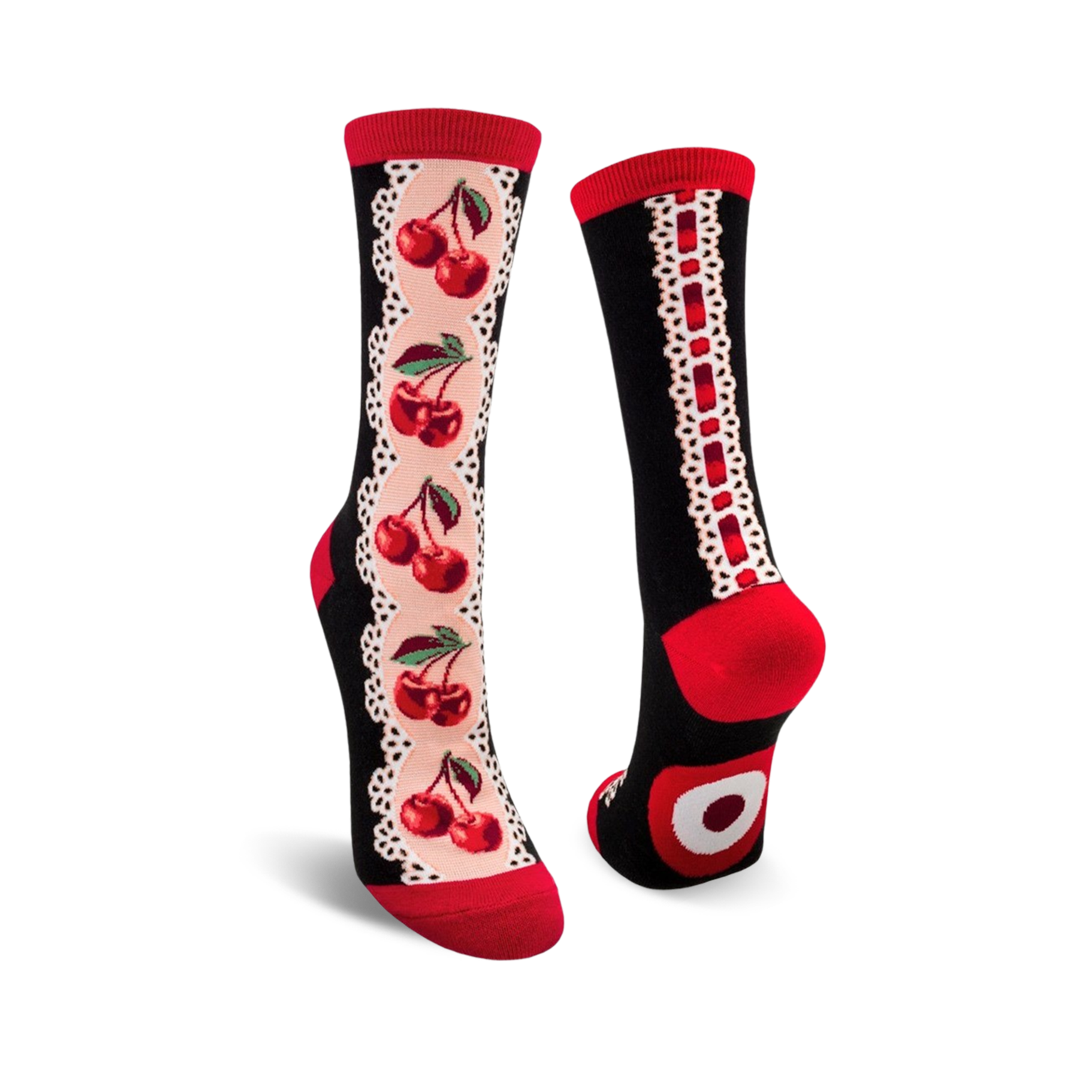 Cherry on top! Turn your sock game into a fruity extravaganza with these joyous cherry socks for women. With their vibrant pink backdrop, playful red cherries, and delicate white lace, these socks are sure to add a dash of sweetness to any day. Wear them and let the cherry charm take over your feet!