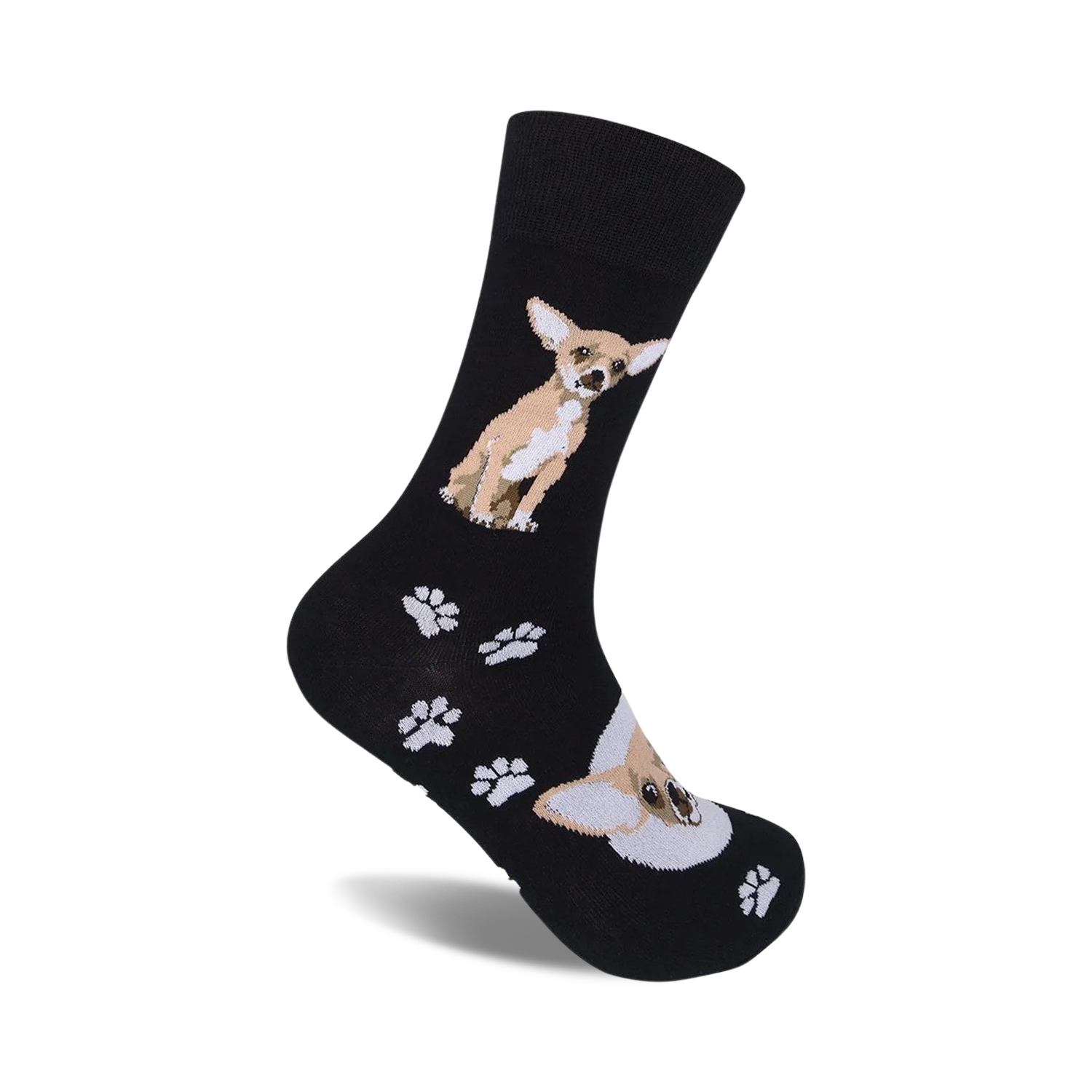 Picture this: you're strutting down the street, rocking these Chihuahua socks, and everyone's like, "Whoa, where'd you get those paw-some socks?" You just smile and say, "Oh, these? They're my Chihuahua crew socks. They're so doggone cute, they make me want to do a happy dance." Plus, they're made with a soft cotton blend that'll keep you comfy all day long. So go ahead, show off your love for the little guys with these Chihuahua socks!