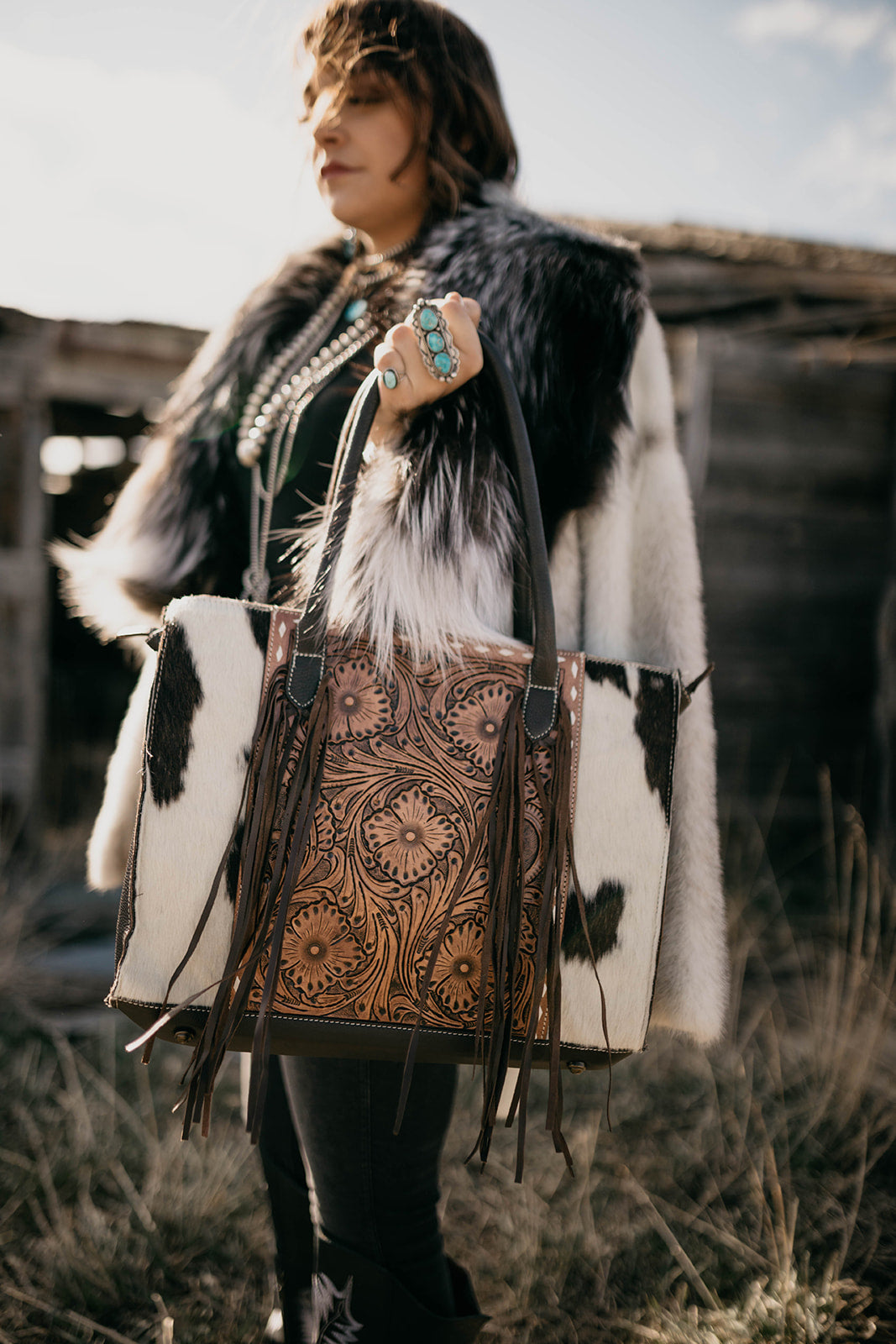 Due to the nature of genuine cowhide every purse will be one of a kind as each purse will be made with a unique cowhide piece. Branding logo may be light or dark brown.