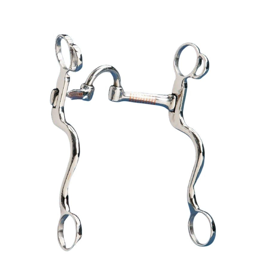 Our S cheek bits are wonderfully balanced and will ride perfectly in the mouth. 5" low correction mouth with inlaid copper and 7 1/2" "S" cheeks.