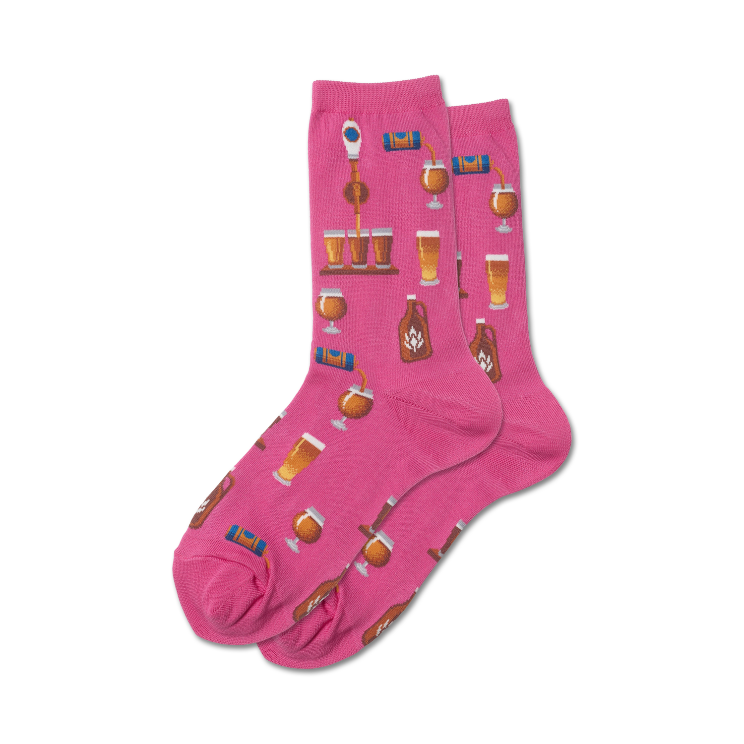 Cheers to the Craft Beer Crew Socks! These gray socks are hoppin' with an allover pattern of beer-related images in brown and green, including beer bottles, beer glasses, beer taps, and hops. Put a spring in your step with these sudsy socks that are perfect for any beer lover!