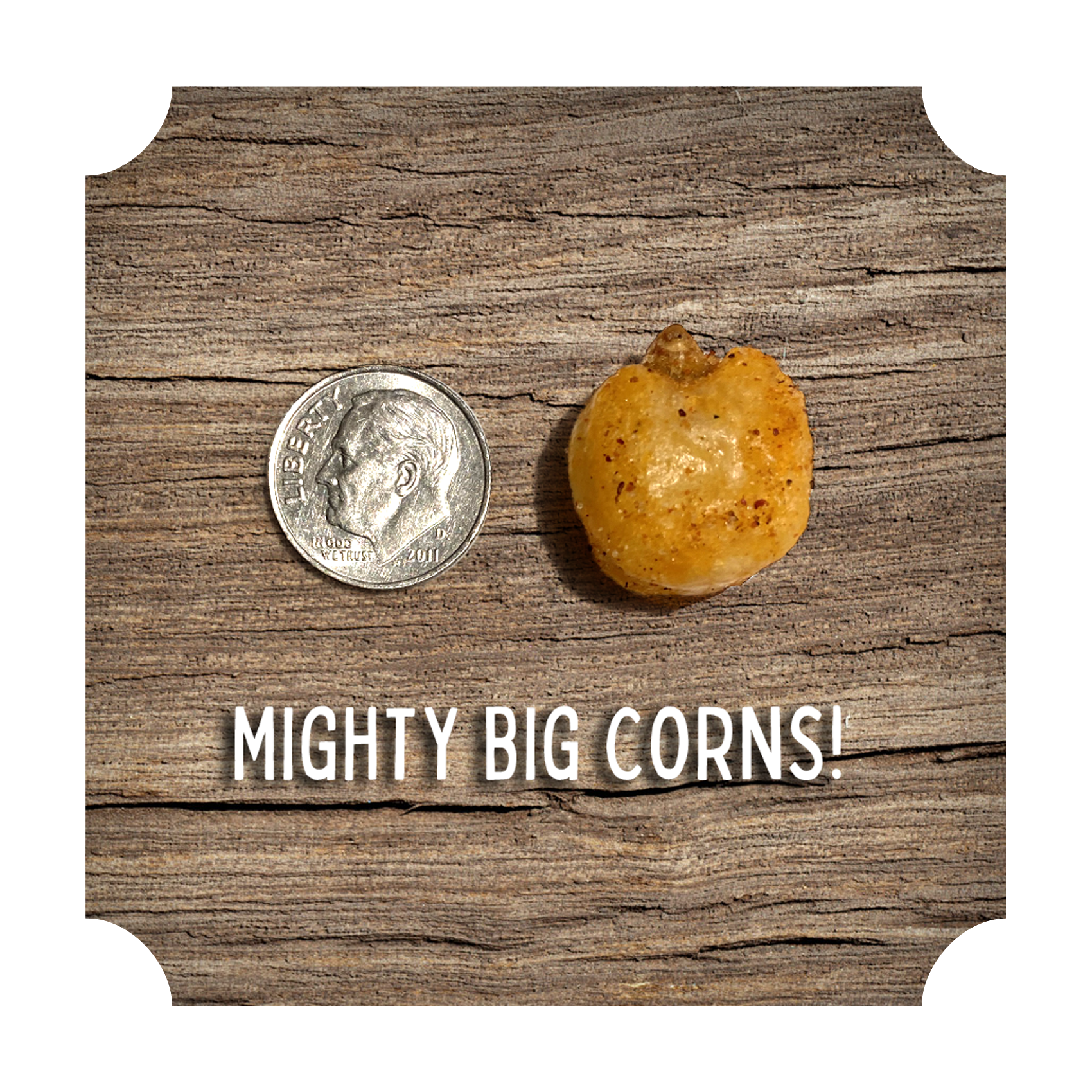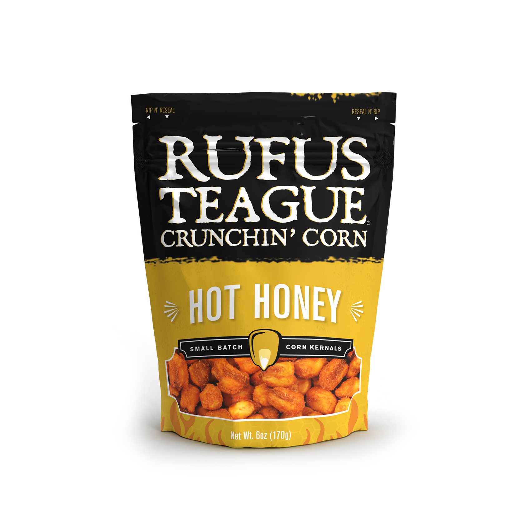 Get a load of these monsters. Our Crunchin' Corns are the best in extra large, roasted corn kernels. Seasoned-up with flavors only Rufus knows how to concoct. You get one big, 6oz bag of each Hot Honey, Barbecue Throwdown and BBQ Ranch Crunchin' Corns. This is a trio of tastiness that you'll have a hard time putting down.