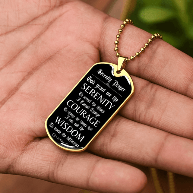 This sleek and classy addiction recovery Serenity Prayer Customizable Dog Tag and Chain has the option for reverse engraving, and is the perfect womens or mens sobriety gift or for anybody overcoming a struggle or needing motivation and inspiration. Perfect Soberversary gift for those in AA or NA or Addiction Recovery, a Sponsor or Sponsee.