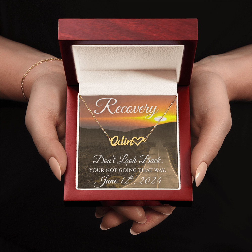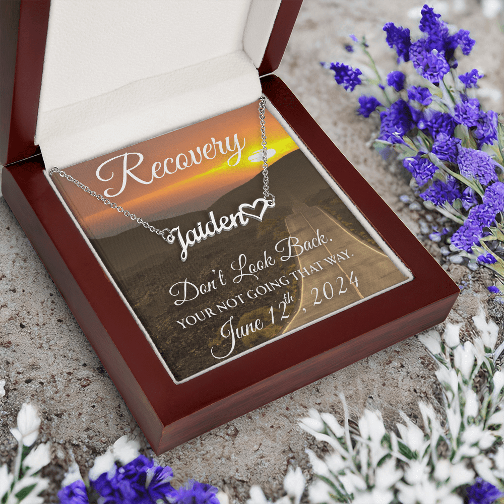 A thoughtful, custom recovery themed gift is the perfect way to show your appreciation and pride for your loved one or friend in recovery! Our Personalized Heart Name Necklace is a chic and stylish accessory that suits any occasion, whether it's a Soberversary, special holiday, anniversary, or simply a spontaneous gesture of affection. With its unique design and personalized touch, this necklace is sure to be a cherished and treasured keepsake for years to come.