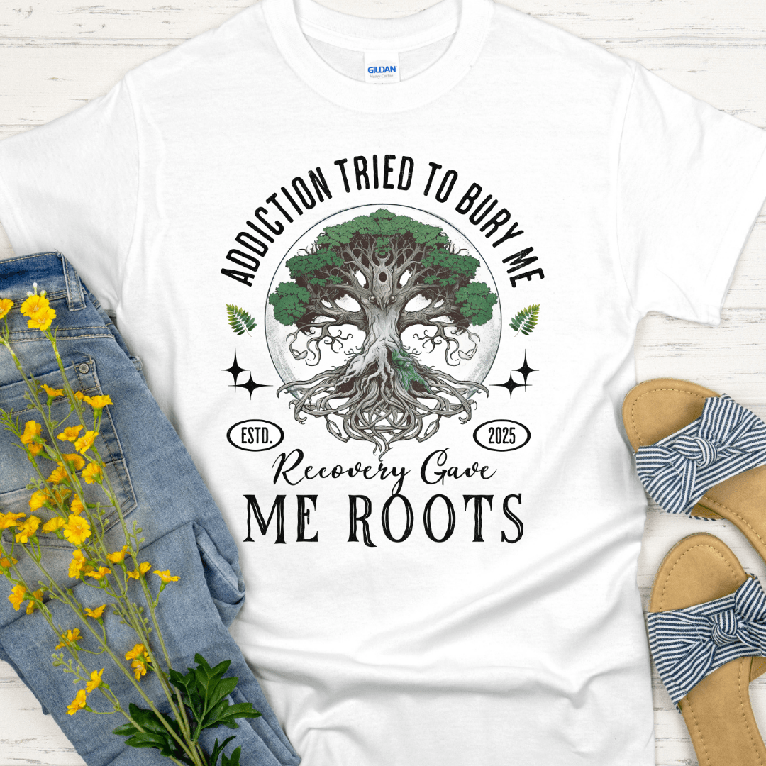 Custom Recovery T-Shirt | Inspiring Sobriety | Recovery Gave Me Roots