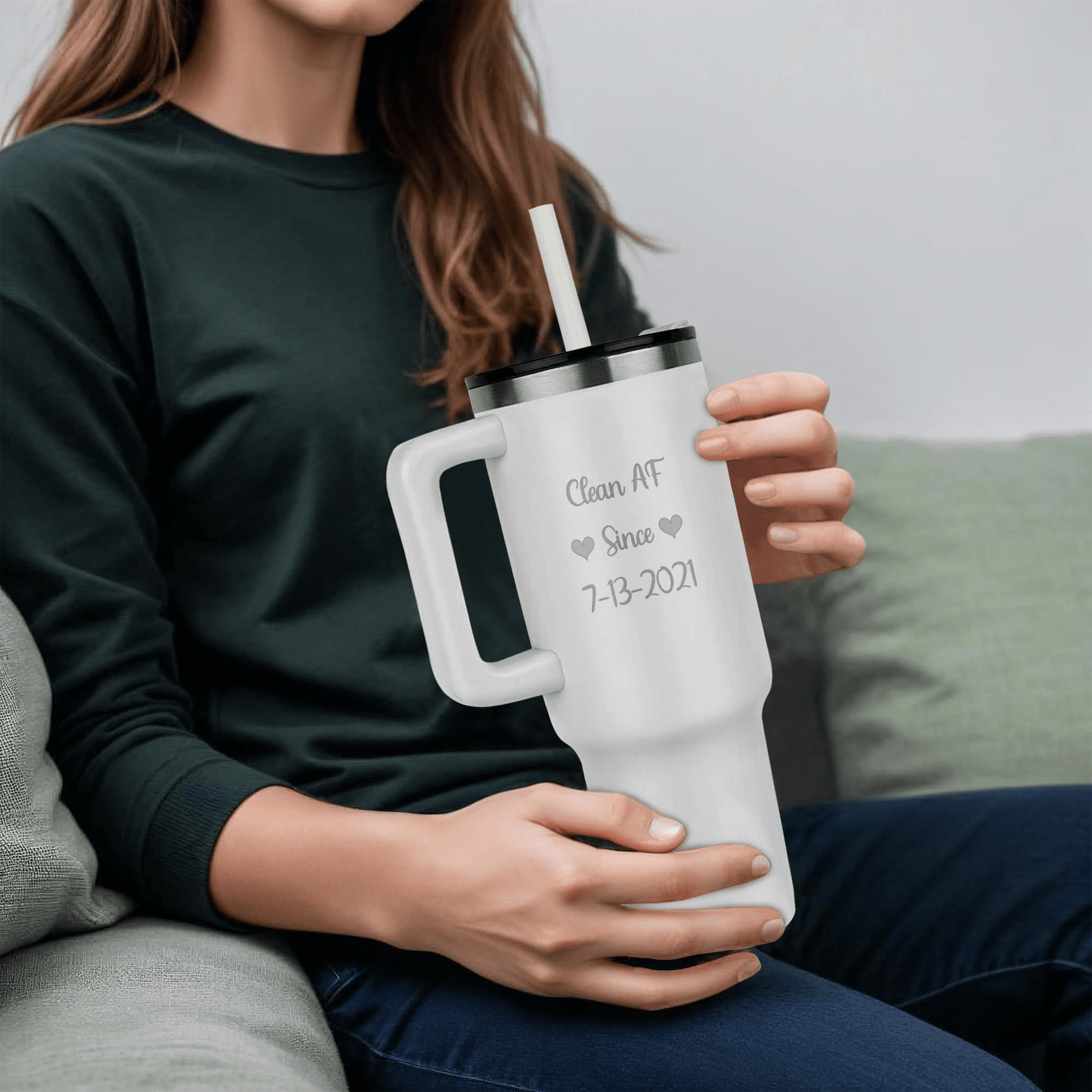 Custom SS Recovery Tumbler | Inspiring Sobriety | Clean AF Since