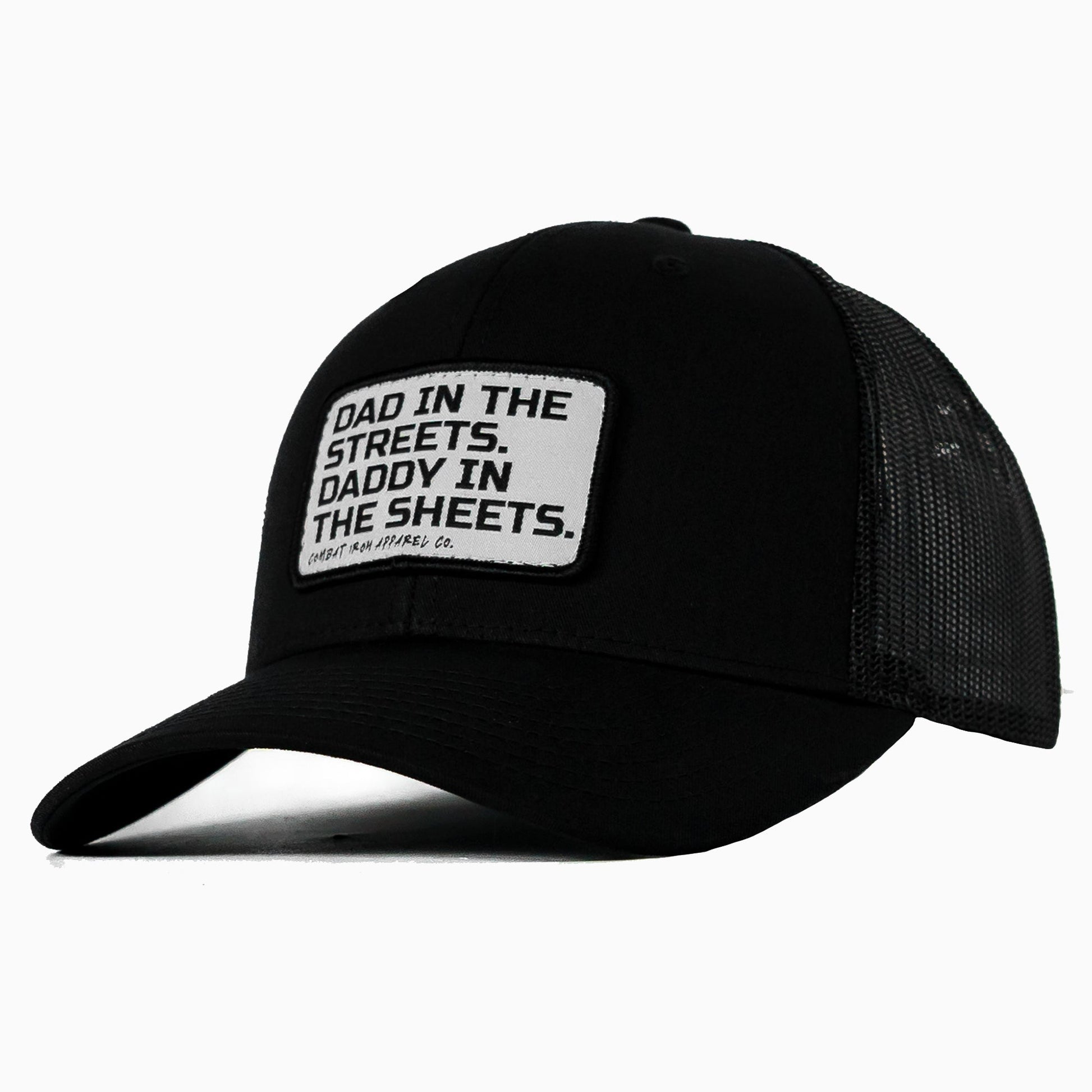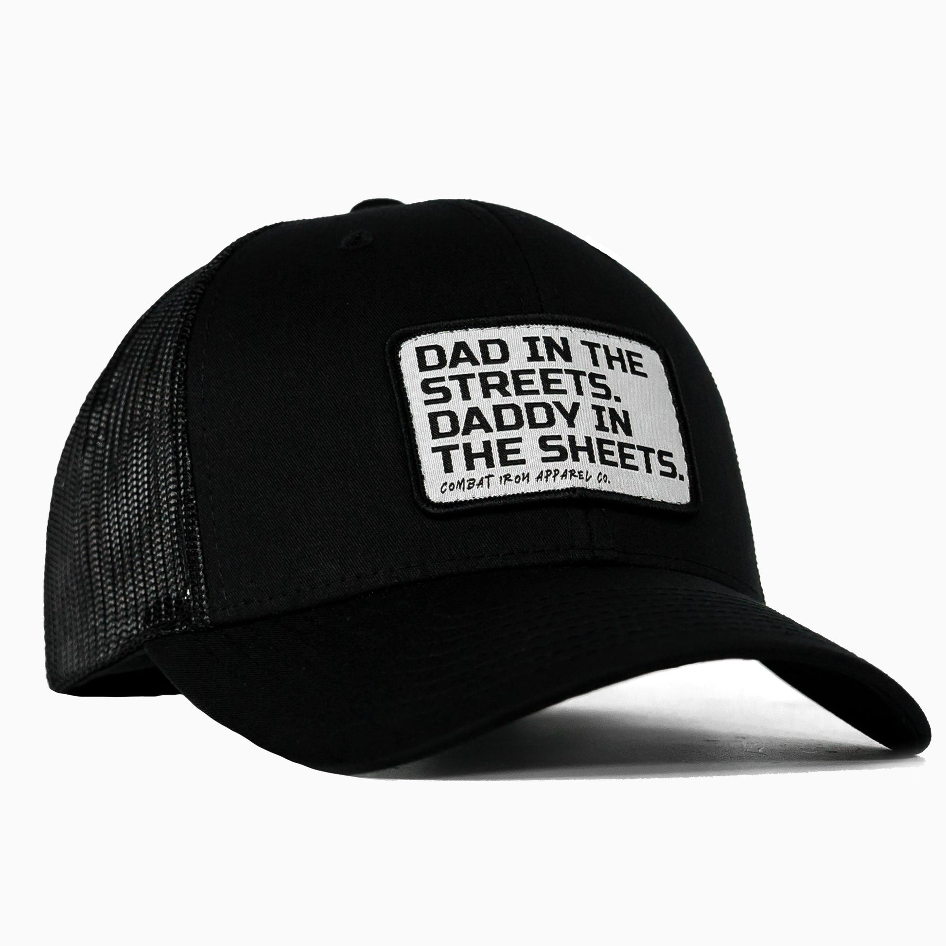 Dad In The Streets. Daddy In The Sheets. White Patch Snapback Hat