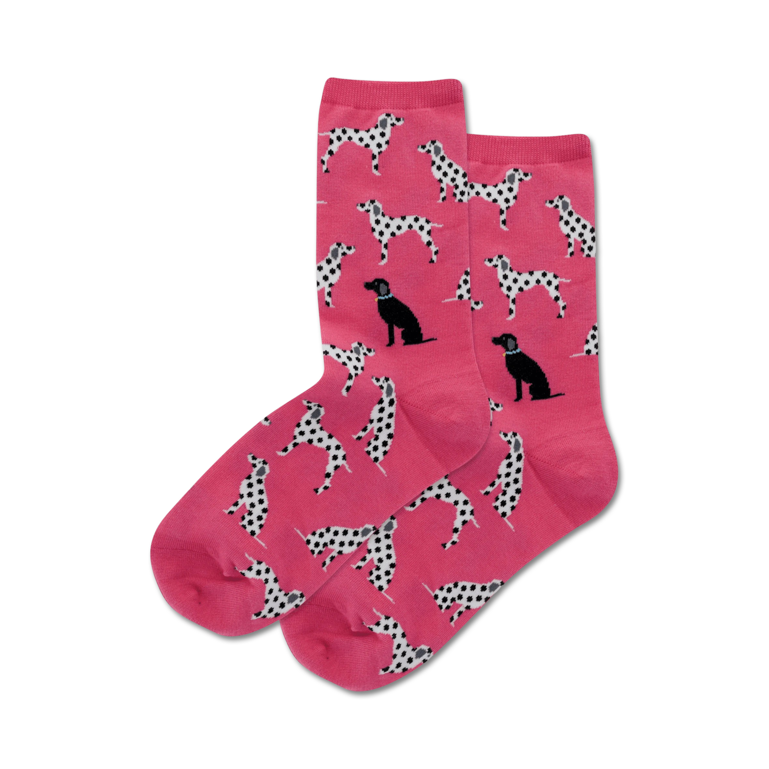 Time to get spotted with these Dalmatian socks! These beloved black and white spotted dogs strike adorable poses from different angles on these fun, lighthearted women's crew socks, so you'll never have to leave home without your furry, dotted friends. Show your love for these loyal, loving, and playful pups every time you look down at your feet.