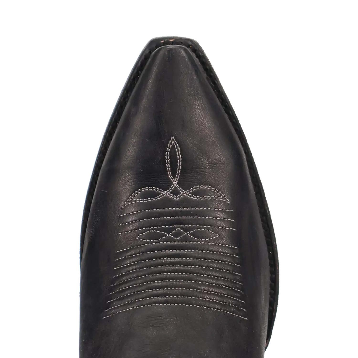 The sleek black leather is beautifully accented by intricate white embroidery, creating a striking contrast that enhances the boot’s overall design. Paired with a leather rubber outsole for durability and traction, the Dan Post Diesel is built for those who appreciate style and substance in every step. Whether for a night out, special occasions, or everyday wear, this boot is a bold yet versatile choice for any wardrobe.