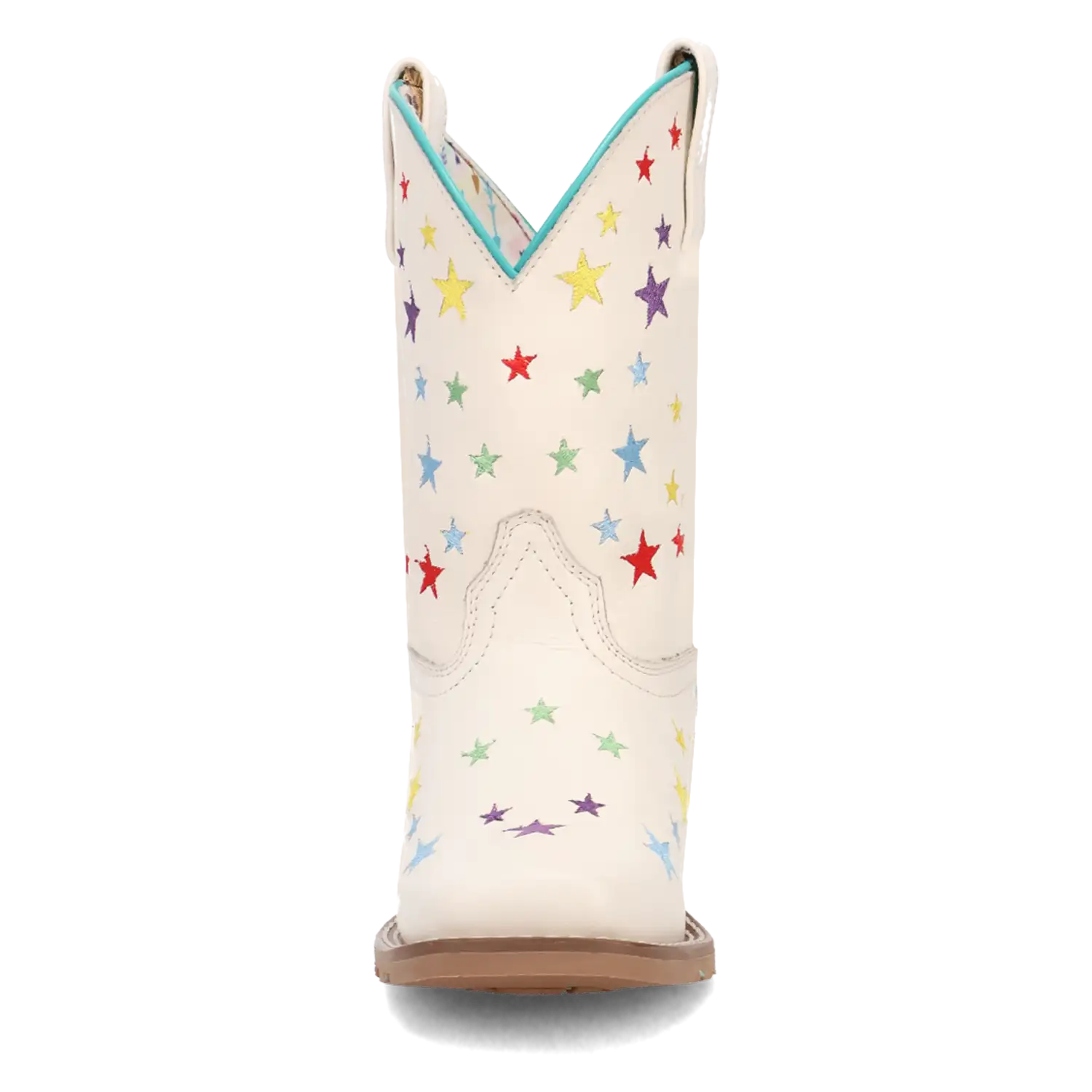 What truly makes the Starlett a standout is the multi-colored star embroidery that dances across the entire boot. Set against a crisp white background, these vibrant stars pop beautifully, adding a fun and playful flair that every little girl will adore.